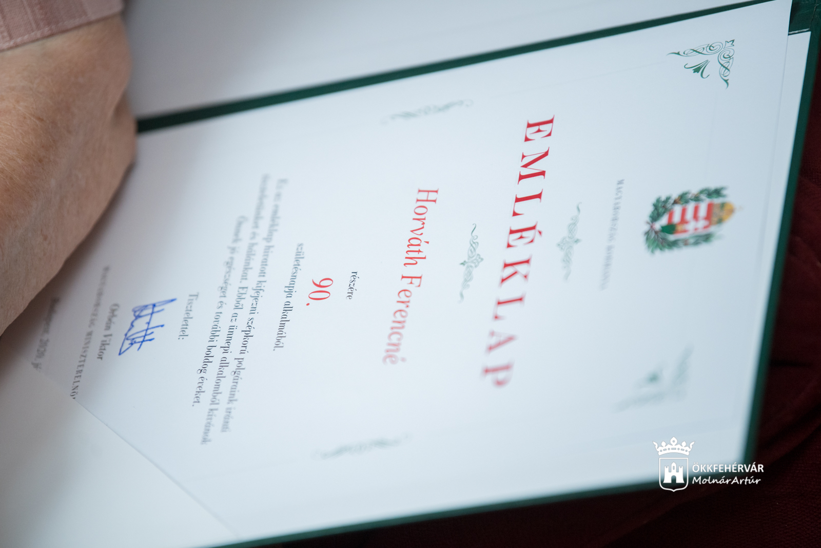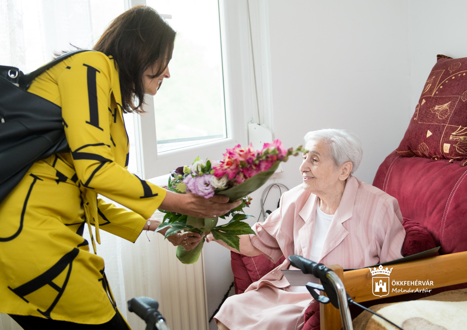Marika nénit Kovács Zsoltné önkormányzati képviselő is meglátogatta az otthonában, és átnyújtotta számára a miniszterelnök által aláírt emléklapot, egy szép virágcsokrot és Székesfehérvár városának ajándékcsomagját. További jó egészéget, tartalmas, szép napokat kívánunk neki!