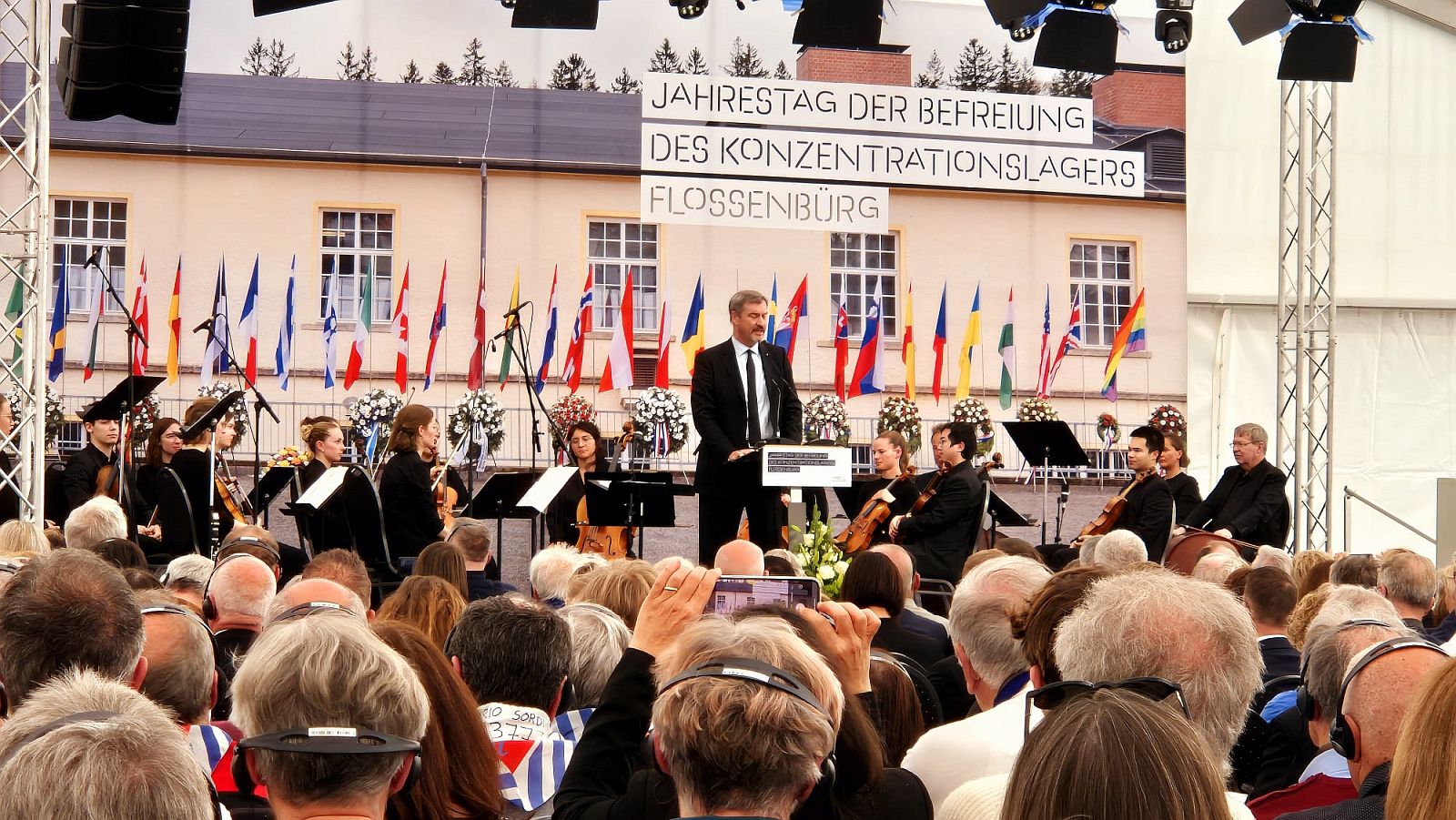 A megemlékezésen az egykori foglyok leszármazottai mellett Markus Söder bajor miniszterelnök, Tobias Reiß a bajor parlament alelnöke, Claudia Roth Kultúráért és Médiáért felelős német szövetségi kormánybiztos is megemlékezett a tábor felszabadulásának nyolcvanadik évfordulójáról. Húsz országból, mintegy ezren rótták le kegyeletüket és emlékeztettek arra, hogy ilyen szörnyűség soha többé nem fordulhat elő.