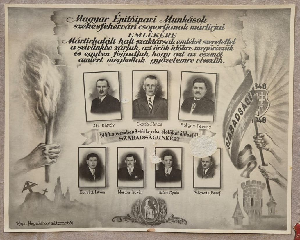 Abt Károly, Skoda János, Stéger Ferenc, Marton István, Horváth István, Szücs Gyula, Palkovics József és Lőwinger Ferenc neve olvasható a Csutora temető egyes parcellájának emlékművén. Ők az egykori Magyar Építőipari Munkások székesfehérvári csoportjának tagjai voltak és egyikük kivételével mindannyian a fossenbürgi koncentrációs táborban és altáboraiban haltak meg.