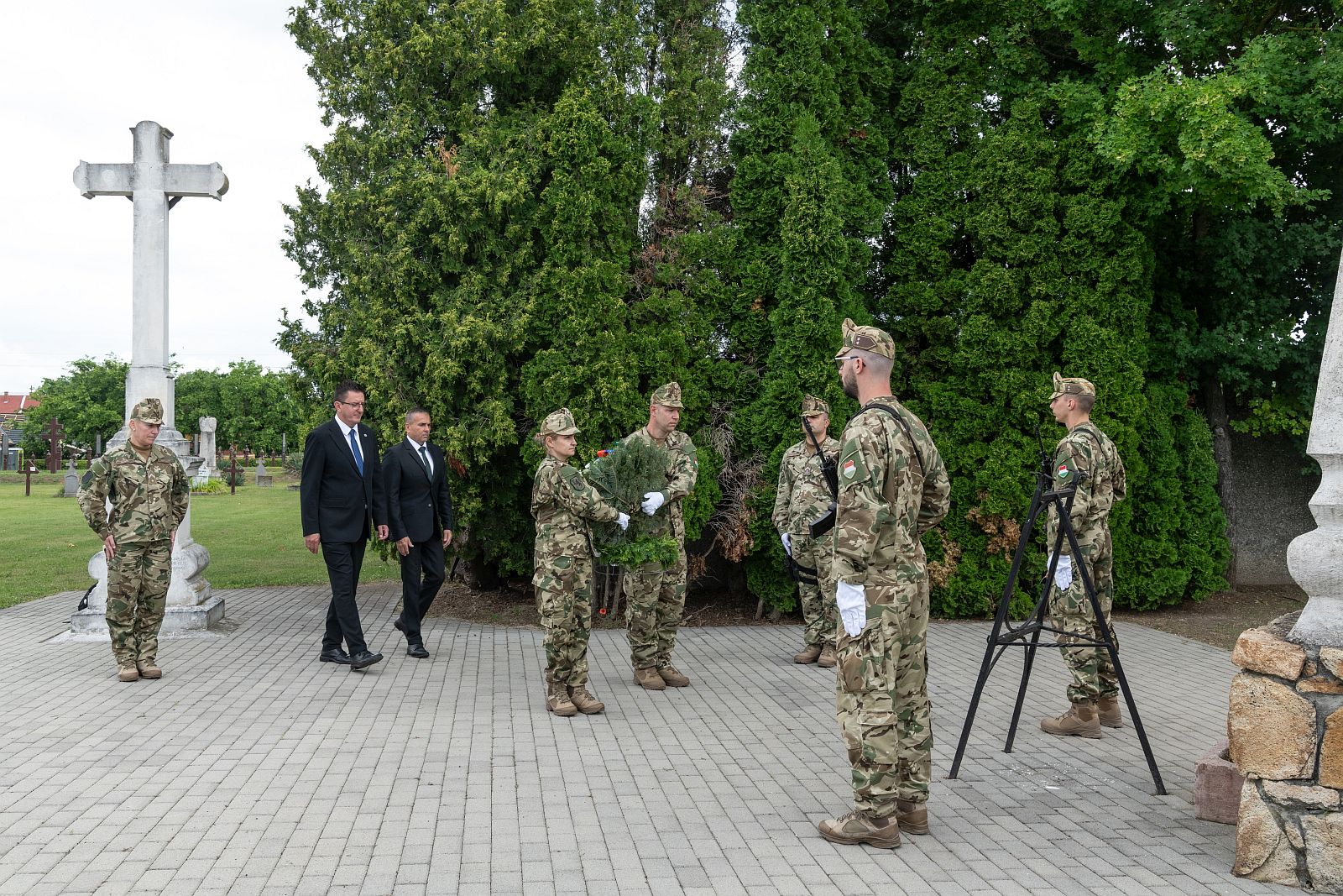 A Szentlélek katonatemető magyar keresztjénél Wilmek Tibor, a Fejér Vármegyei Közgyűlés alelnöke és Dancs Norbert, a Fejér Vármegyei Kormányhivatal Székesfehérvári Járási Hivatalának vezetője emlékezett koszorúzással a hősökre.