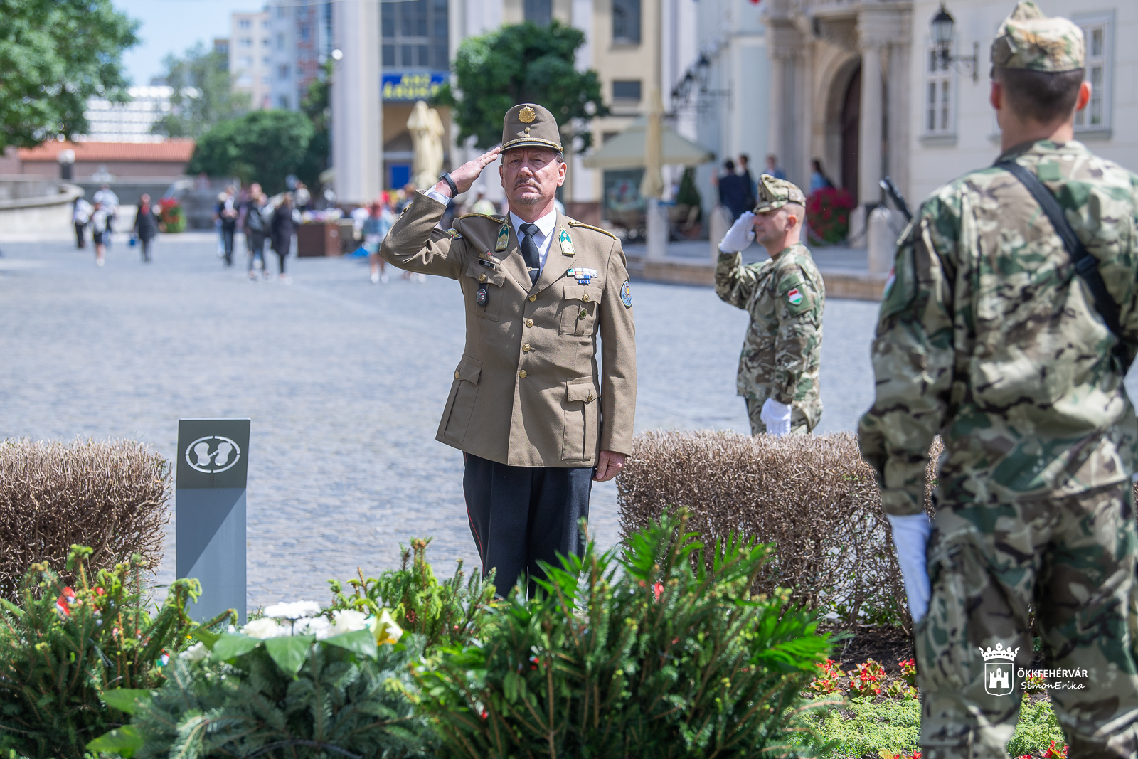 A Béke téren Viza Attila közbiztonsági tanácsnok, önkormányzati képviselő és Pálffy Károly, a Fejér Vármegyei Közgyűlés alelnöke közösen koszorúzott. Részt vett továbbá Kása István ezredes, az MH Nagysándor József 51. Híradó- és Vezetésbiztosító Dandár parancsnoka és több magánszemély, civil emlékező is.