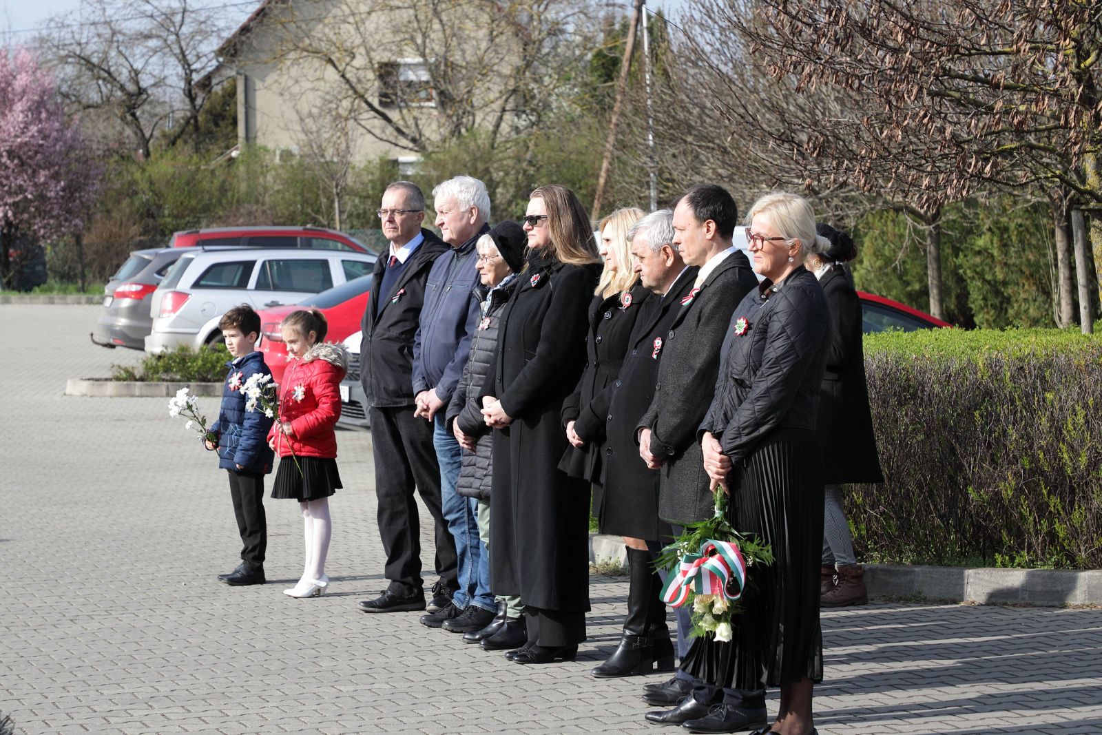 A város óvodásai és kisiskolásai által kokárdával, zászlókkal feldíszített Petőfi-szobornál Farkas László önkormányzati képviselő és Pálffy Károly alelnök koszorúzott, akikhez a környékbeli intézmények és több civil szervezet képviselői is csatlakoztak.