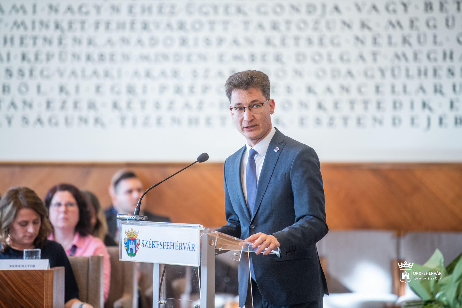 Ugyancsak köszöntötte az ünnepség résztvevőit dr. Cser-Palkovics András, Székesfehérvár polgármestere. Köszönetét fejezte ki többek között Balsay István korábbi polgármesternek, akinek kezdeményezésére létrehozták a Kodolányi Egyetemet. Mint mondta, az intézmény nem önmagában csak Székesfehérvár, hanem a vármegye meghatározó szereplője, és ez a helyzet még inkább erősödni fog a közös erőfeszítéseknek köszönhetően. A polgármester köszönetét fejezte ki Magyarország kormányának is az államilag finanszírozott helyek biztosításáért és azokért a döntésekért, melyeknek köszönhetően az Egyetem székhelyét tavaly visszahozták Székesfehérvárra.