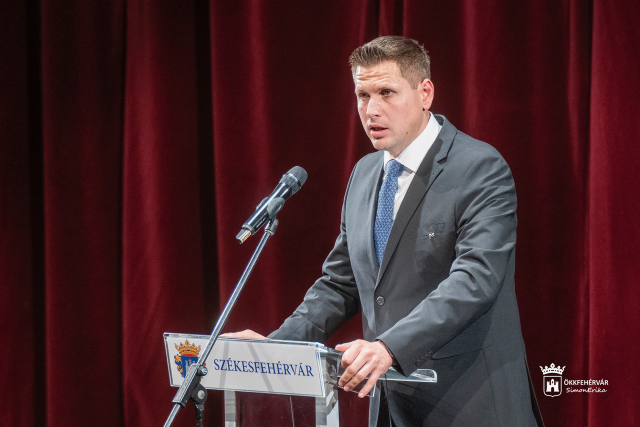 Az ünnepség idén a Vörösmarty Színházban folytatódott, ahol elsőként Székesfehérvár polgármestere szólt: „A történelem kevés nemzetet és nemzedéket állít akkora próbatétel elé, hogy egy gonosz birodalommal, vagy egy végletekig hazug ideológiával szemben szinte a semmiből kelljen egyéni és nemzeti szabadságát újra és újra kivívnia.” – kezdte beszédét dr. Cser-Palkovics András. Székesfehérvár polgármestere hangsúlyozta, hazánk és városunk elmúlt fél évezredében számos próbatétel volt, ám ezek közül az 1956-os forradalom kiemelkedik: időben Ők állnak hozzánk legközelebb és élesen láthatjuk, hogy nem pusztán külső hódítókkal, elnyomókkal, hanem hatalomvágyó, gátlástalan hazai kiszolgálóikkal is meg kellett küzdeniük.
