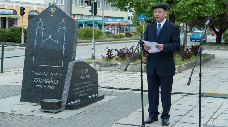 A Zsinagóga Emlékműnél a Teleki Blanka Gimnázium és Általános Iskola diákjai emlékeztek műsorukkal az második világháború zsidó áldozataira, majd Neubart István, a Székesfehérvári Zsidó Hitközség elnöke mondott beszédet. „Emlékezünk mártírjainkra, akiket embertelen körülmények között hurcoltak el otthonaikból, akiket megaláztak, akiket megkínoztak, és akiket szívtelenül, lelketlenül elpusztítottak. Emlékeztetnünk kell a vészkorszakra amikor nem volt értéke az emberi életnek, amikor megkülönböztették és üldözték származásuk, vallásuk miatt az embereket.” – mondta a hitközségi elnök, aki arra is emlékeztetett, hogy 600 ezer magyar zsidót, Székesfehérvár és környékéről 3000 embert gettóba, haláltáborokba vittek, kényszermunkára hurcoltak. „Az ily módón megalázott honfitársaink teljes jogú magyar állampolgárok voltak. A hazai zsidóság magyarnak érezte magát, sorsközösséget érzett a nemzettel. Aktív szereplői voltak a tudományos,kulturális, gazdasági életnek.” – tette hozzá. Az ide vezető utat felidézve szólt az 1920-as években meghozott numerus claususról, az 1938-as zsidó törvényről, az 1939-ben meghozott második zsidó törvényről és az 1941-es harmadik zsidó törvényről is, amely megtiltotta a vegyes házasságot. Kiemelte, hogy 1942-től tilos volt mezőgazdasági földet vásárolni, aki ilyennel rendelkezett, köteles volt átadni másnak. Elmondta, hogy 1944. márciusától az események felgyorsultak, egymást követték a diszkriminatív intézkedések.
