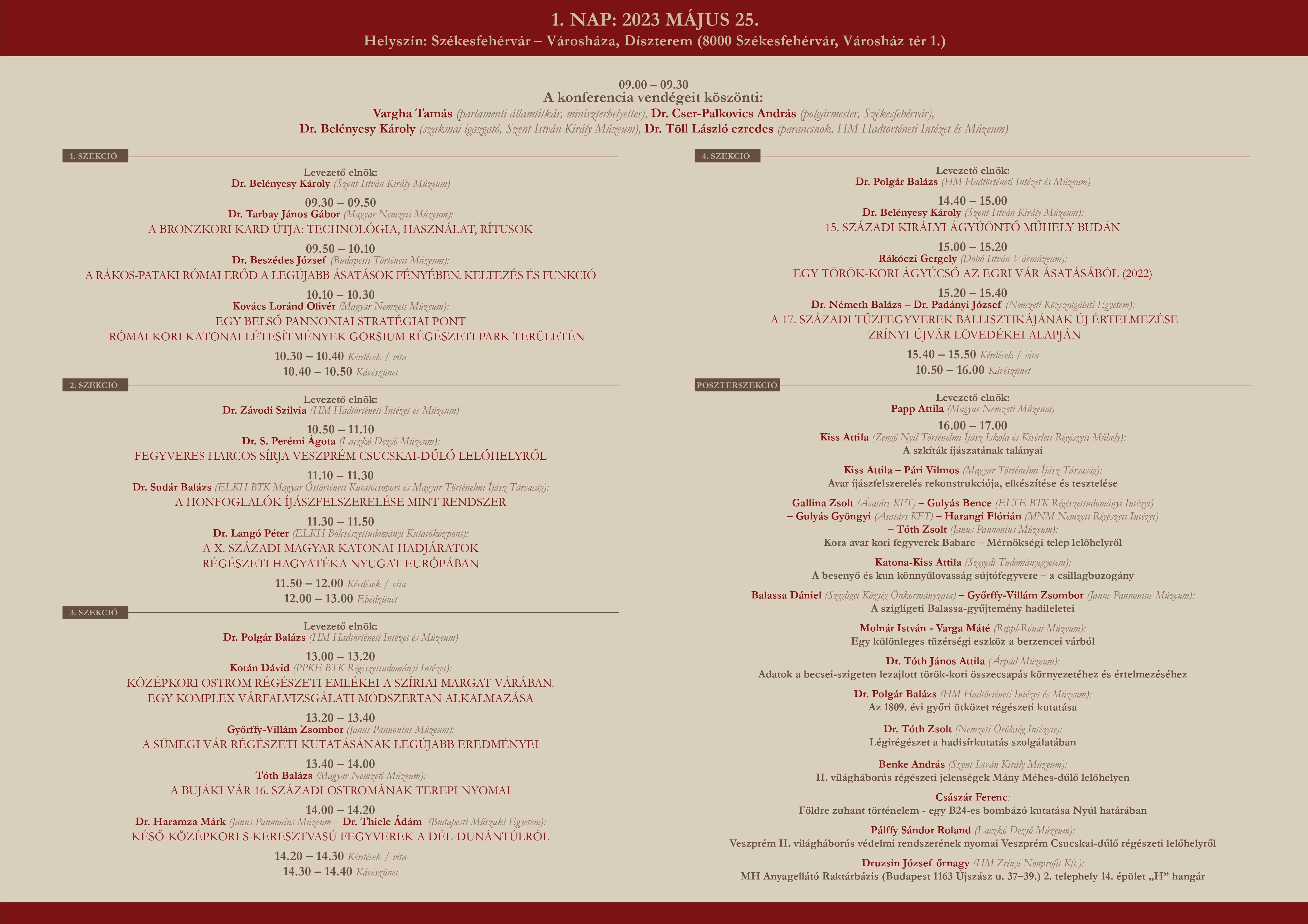 Idén a konferencia poszterszekcióval is kiegészül. Pokrovenszki Krisztián, a Szent István Király Múzeum főigazgatója felidézte: mikor az intézmény vezetője lett, elhatározta, hogy a múzeumnak olyan együttműködésekre van szüksége, melyek valós tartalommal töltik meg. A közelmúltban több együttműködést is kötöttek egyesületekkel, egyetemekkel, múzeumokkal, így nagy örömmel fogadta a Hadtörténeti Intézet és Múzeum megkeresését. A főigazgató megtisztelőnek érzi, hogy rendezőként vehetnek részt a konferenciában, melynek előadói garanciát jelentenek a minőségi, szakmai programra.