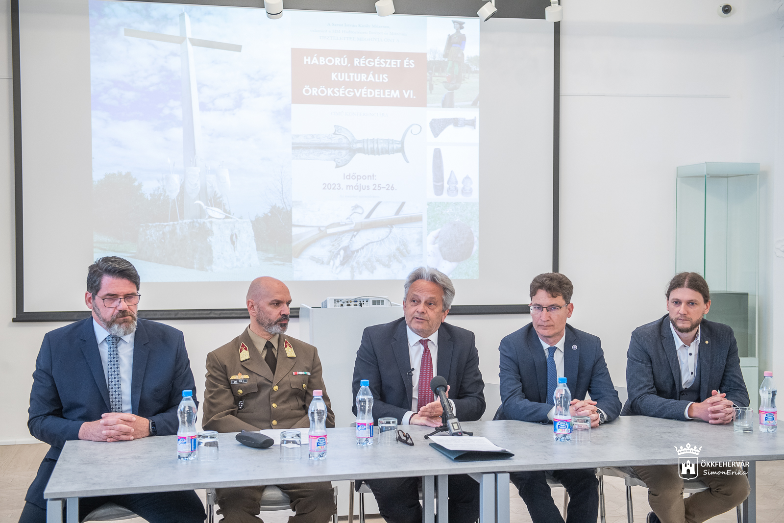 Miközben egy modern hadsereget építünk a jelenben, most egy kicsit a múltba is tekintünk a konferenciával, ahol majd háborúról, régészetről és kulturális örökségről is beszélgethetünk – fogalmazott köszöntőjében Vargha Tamás, a Honvédelmi Minisztérium miniszterhelyettese, Székesfehérvár országgyűlési képviselője, aki a sajtótájékoztatón bejelentette: