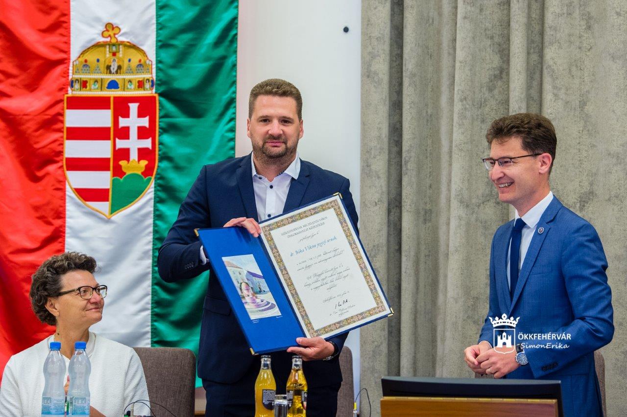 A Közmeghallgatás elején Székesfehérvár polgármestere gratulált dr. Bóka Viktor jegyzőnek, akinek címzetes főjegyzői címet adományozott Orbán Viktor miniszterelnök július elején.