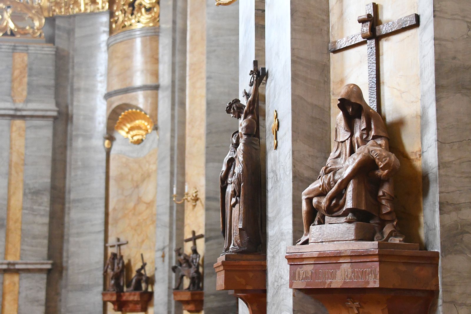 A Szent István Székesegyház fából faragott stációit Búza Barna szobrászművész 1954 és 1957 között készítette, magyar diófából.