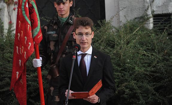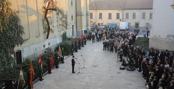 Székesfehérvár polgármestere a szabadságharc áldozataira emlékezett és szólt a 2013-as Szent István Emlékévről is, amely ugyanúgy erősítheti majd a nemzet erejét, mint az 1956 hőseinek tettei. „A szabadságunkat azoknak a bátor, nemes lelkű magyaroknak és fehérváriaknak köszönhetjük, akik 1956-ban életüket adták a mi szabadságunkért és azoknak is akik az ÁVH golyózáporától és börtönétől ugyan megmenekültek de életük végéig súlyos teherként hordozzák a szabadság zálogát.” - mondta dr. Cser-Palkovics András, aki emlékeztetett arra is, hogy 1956-ban a Nyugat csak tisztelte, de nem segítette a magyar forradalom és szabadságharc ügyét. „Szerencsések vagyunk, mert vannak hőseink. Õk a mi hőseink, akik itt élnek köztünk és velünk mindannyian az élő emlékezetben. És nem csak élnek, szólnak is. Ma is beszélnek hozzánk. A bátorság monumentális kolosszusaiként fölénk magasodva arra tanítanak, hogyan kell viselkednünk az igazságért folytatott harcban. Hogy nem szabad engednünk, amikor egy nagyobb hatalom olyat kér tőlünk, ami teljesíthetetlen! Hogy nem szabad engednünk a magyarság értékeiből, ötvenhatos hőseink szívünkbe égetett üzenetéből, hogy mernünk kell tenni, bátornak kell lenni és minden csata megnyerhető!" - tette hozzá. Székesfehérvár polgármestere egy közelgő ünnepről is szólt a megemlékezésen. „Közeledik az emlékév ünnepe, amely Székesfehérvár egész nemzetre kiterjedő üzeneteként ugyanúgy erősítheti közösségünk erejét, mint 56-os hőseink cselekedete. Jövőre pompába kell öltöztetnünk szívünket és vele együtt a nemzet történelmi fővárosát is. ” - mondta.