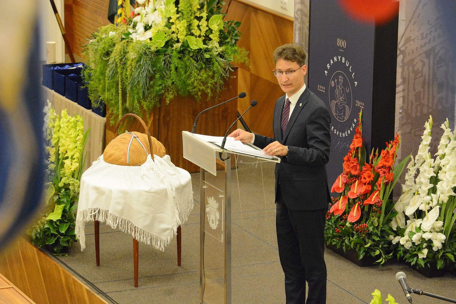 Ezt követően hagyományosan díszközgyűlést tartott Székesfehérvár képviselőtestülete. A díszközgyűlésnek ezúttal a Városháza Díszterme adott otthont, ahol felcsendült a Fehérvár fanfár és a Himnusz, majd Farkas Eszter, a XII. Fehérvári Versünnep győztese és Szlama László Junior Príma díjas népzenész közös műsora. Az ünnepi műsort követően dr. Cser-Palkovics András, Székesfehérvár polgármestere ünnepi beszédében közös otthonunk, Székesfehérvár helyzetét értékelte, majd a jövő kérdéseire is rátért.