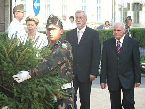 Székesfehérvár polgármestere a közös ünneplés és a hagyományok fontosságára hívta fel a figyelmet. "Hagyományaink nélkül gyökértelenek lennék a világban, Szent István példája segít minket abban ,hogy minden magyarnak legyen hite a jövőben" - emelte ki Warvasovszky Tihamér. Az ünnepi beszédeket követően elsőként a megyei, majd a városi önkormányzat vezetői helyeztek el koszorút Szent István szobránál.