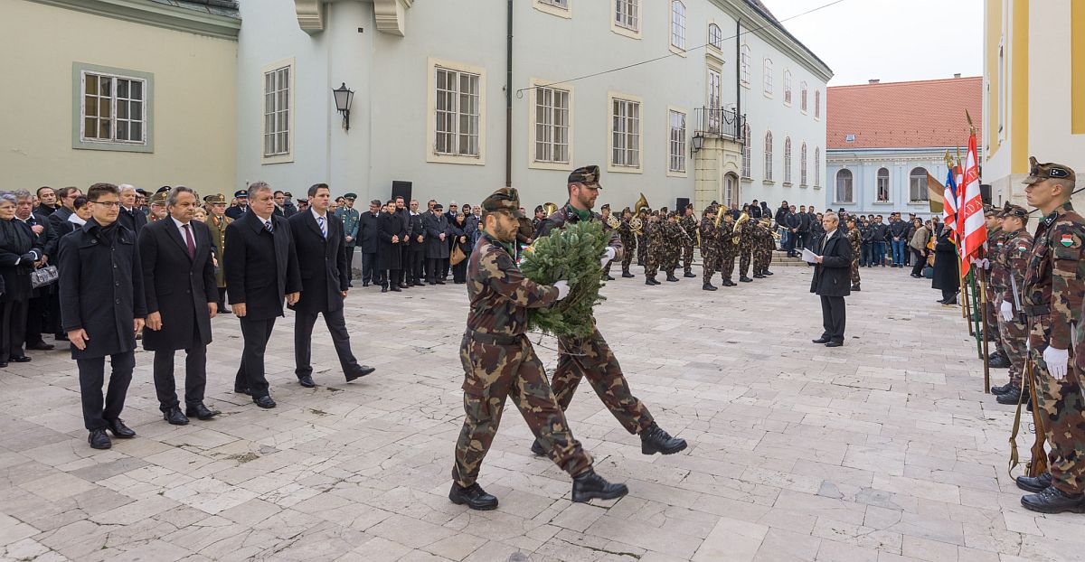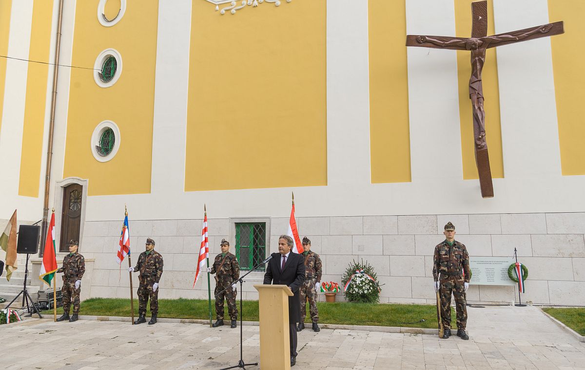 Ezt követően Vargha Tamás, a Honvédelmi Minisztérium miniszterhelyettese, Székesfehérvár országgyűlési képviselője mondott ünnepi beszédet. „1989. június 16-án eltemette a nemzet Nagy Imrét. Több mint három évtized megtorlás, elhallgattatás, kényszerű hallgatás és történelemhamisítás után édesapáink és nagyapáink nemzedéke először emlékezhetett szabadon és vállaltan. Szívükben fájdalommal, szemükben könnyekkel, hajlott koruk ellenére szálfaegyenes belső emberi tartással. Akkor még csak lelkükben magasodtak emlékművek. Október ünnepe számukra a gyászt jelentette. Gyászt az elvesztett harcostársért, gyászt az elvesztett szabadságért. De a hétköznapokban, amikor ’56 dicsőséges napjairól meséltek, felcsillant a régi fény a szemükben, és elmondták gyerekeinknek, unokáinknak, hogy egy évtized elnyomása, szenvedése, félelme és rettegése után hirtelen, egyik pillanatról a másikra hogyan vetették le a rabigát. Arról beszéltek, hogy az a tizenkét nap milyen gyönyörűséges volt számukra.” – mondta Vargha Tamás, aki úgy fogalmazott: az öröm és a szabadság forradalma volt az a néhány nap.