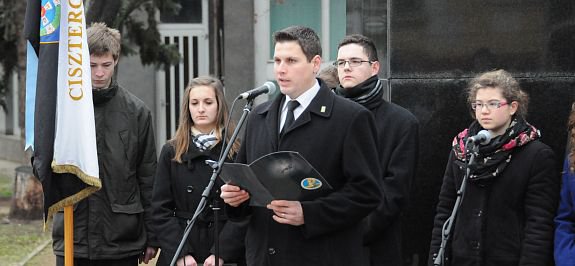 „A kommunizmus áldozatainak emléknapján nem kerülhető meg a kérdés, miért nem látjuk még mindig a kommunizmus valódi arcát? Miért tartják magukat makacsul azok a meggyőződések, melyek szerint a kommunizmusnak szép, szent céljai voltak, csak a megvalósításuk sikerült balul?” - tette fel a kérdést beszédében Dr. Molnár Krisztián, a Fejér Megyei Önkormányzat főjegyzője, majd Illyés Gyula szavaival válaszolt, mely szerint a „múltat is teremteni kell.” A főjegyző szerint az emléknap legfontosabb célja „találkozni és megérteni az előttünk járók, a múlt üzenetét.” A beszédeket követően a Ciszterci Szent István Gimnázium diákjai elevenítették fel a kommunista diktatúra napjait, majd a résztvevők megkoszorúzták az 56-osok terén lévő emlékművet.