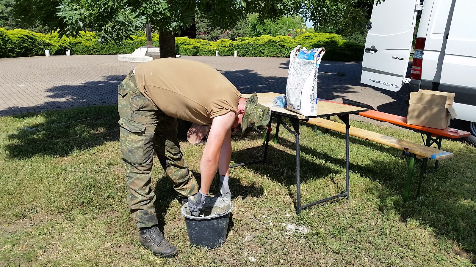 A Német Hadisírgondozó Népi Szövetséget 1919-ben alapították. A szervezet közreműködésével rendszeresen zajlanak munkálatok a világ 45 országának összesen 832 katonatemetőjében, Európában, Észak-Afrikában és a volt Szovjetunió utódállamaiban. A 295. Tüzér Zászlóalj tíz katonája érkezett Székesfehérvárra a németországi Stetten am Marktból.