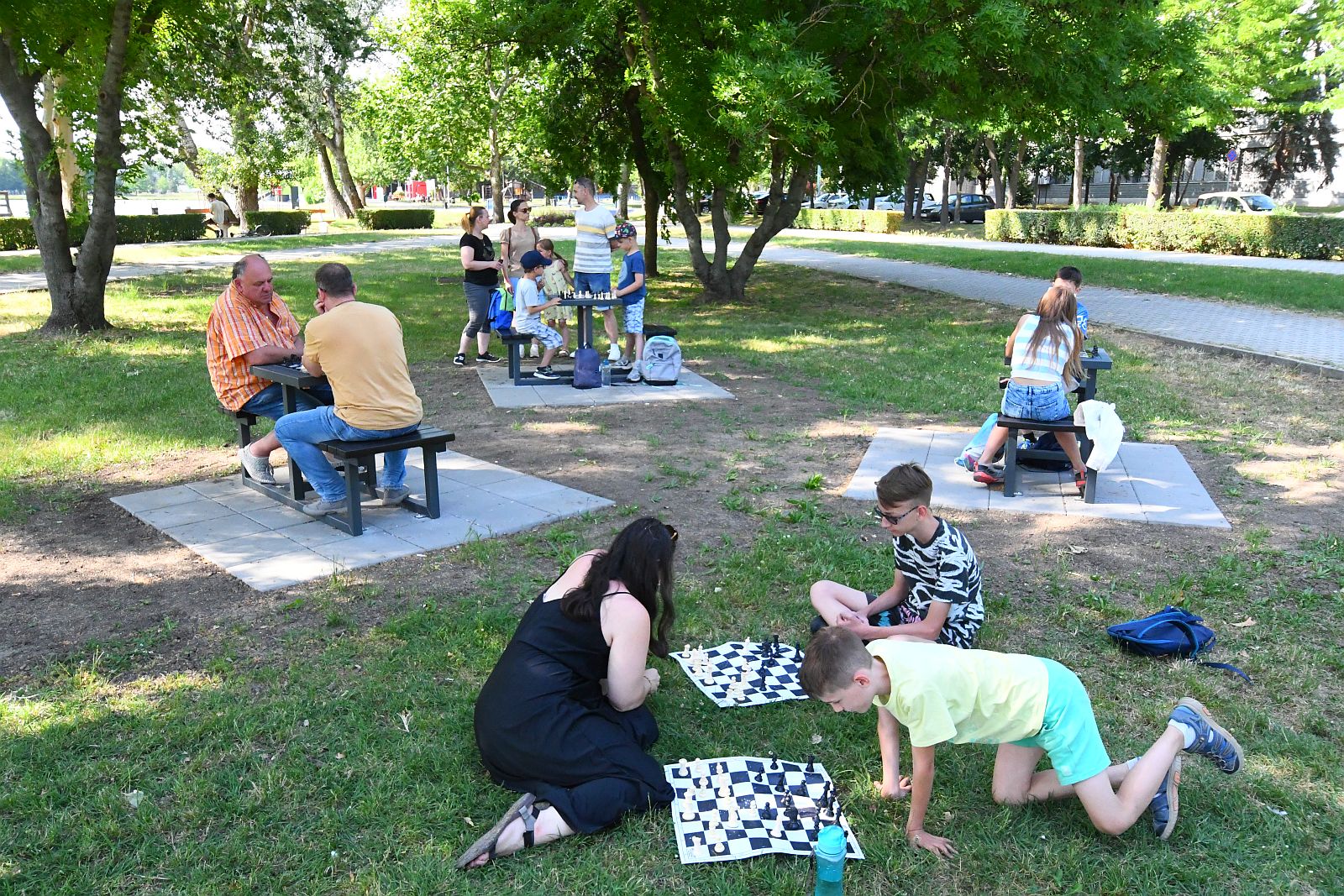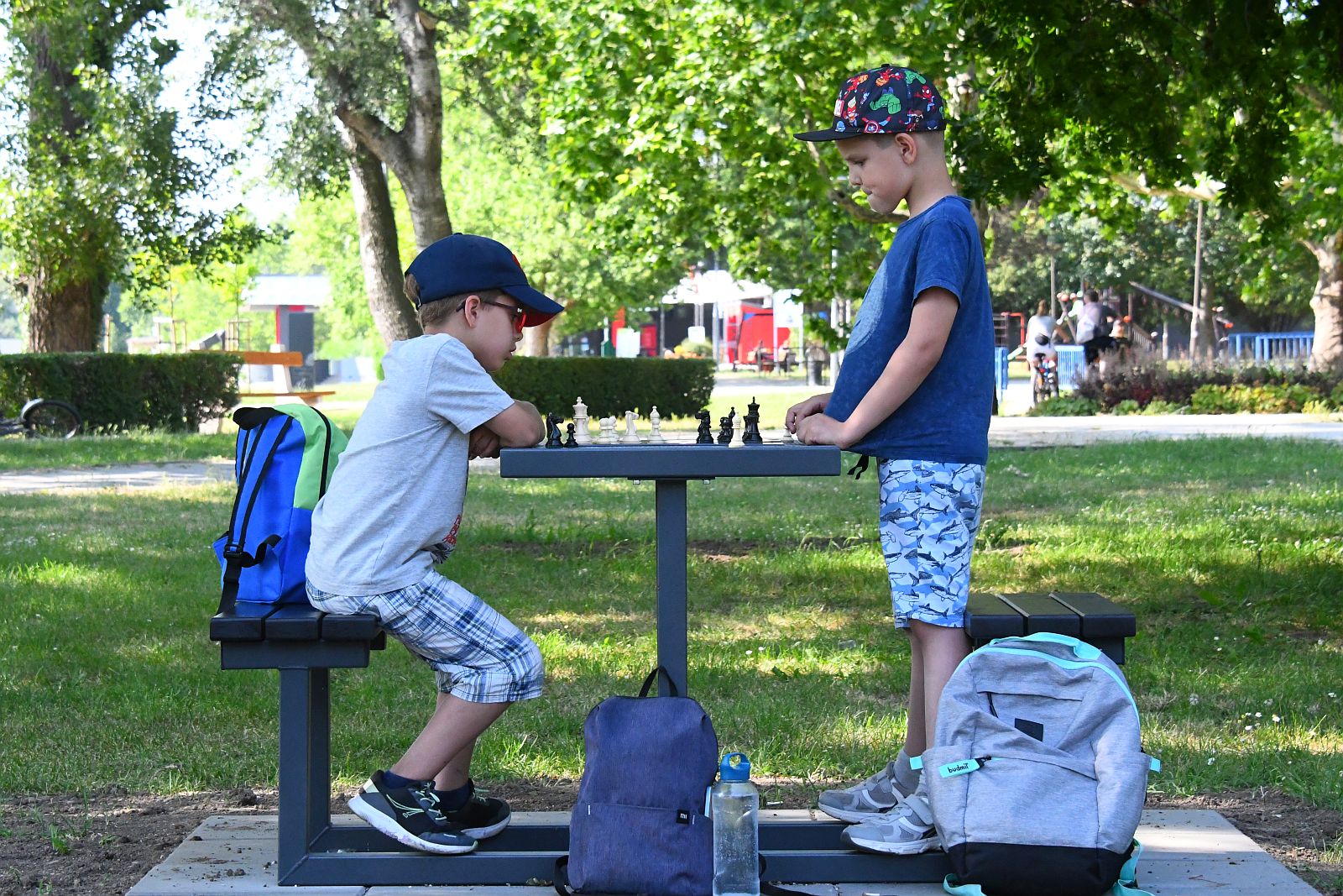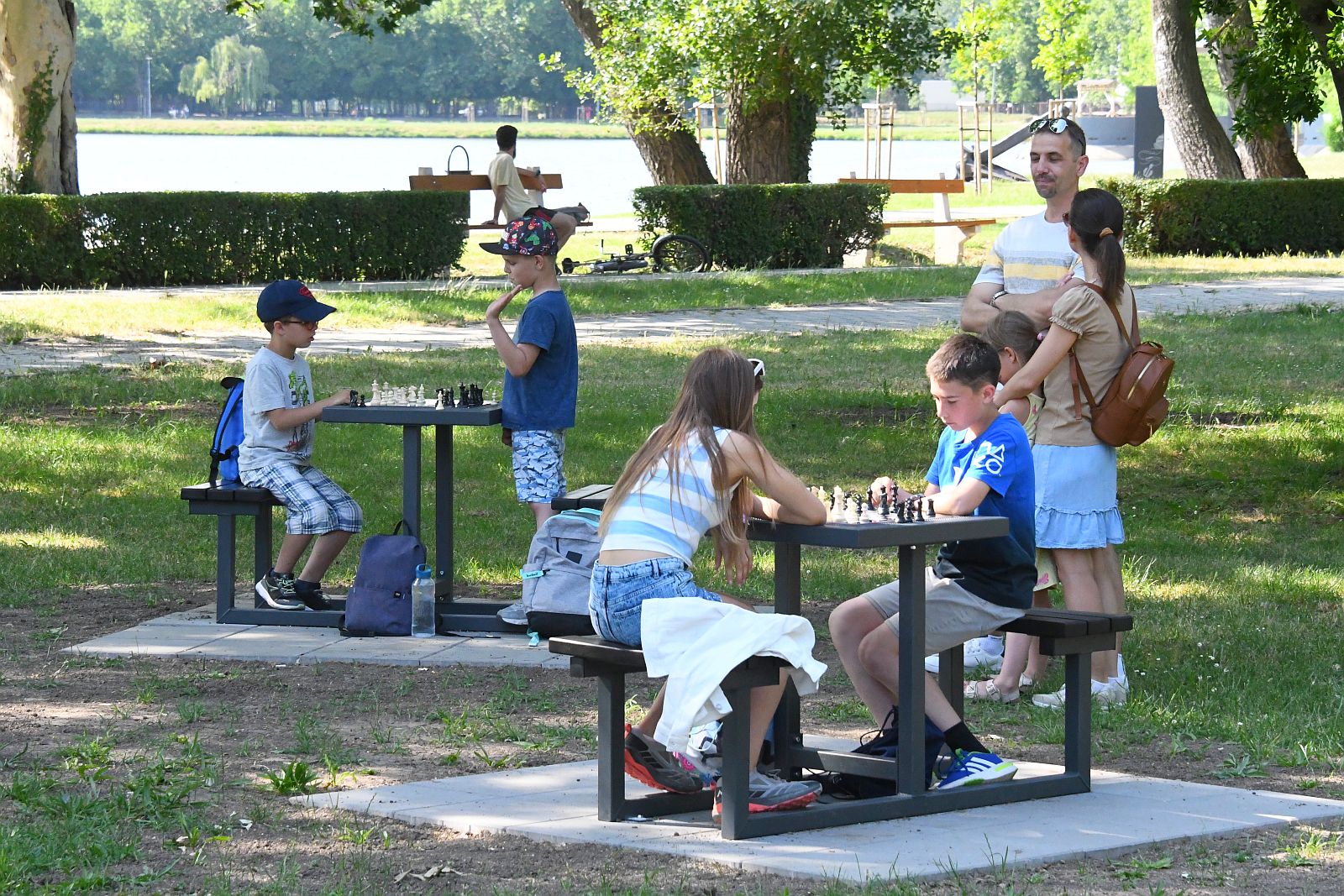 A játékeszközök hamar használatba is kerültek, pénteken délután például már a Rózsa ligetben tartotta rendes heti edzését a Fehérvári Sakk Egyesület Hortobágyi Luca vezetésével.