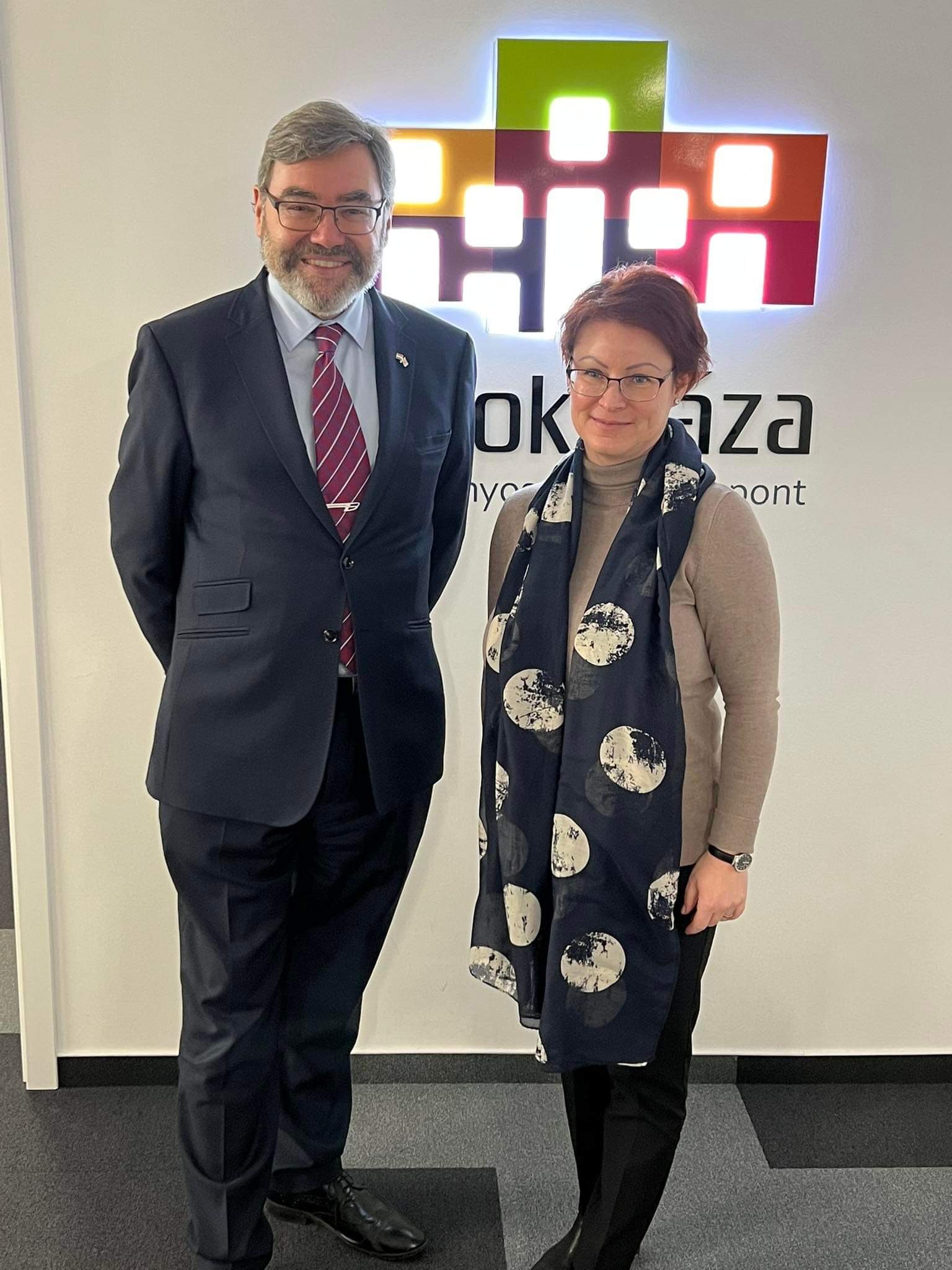 A nagykövet a civil élet lehetőségeiről, színtereiről kapott tájékoztatást látogatása során Dr. Zugor Zsuzsannától, az Echo Innovációs Műhely elnökétől.