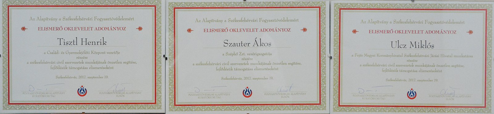 „A helyi közösségért elkötelezett civil szervezetként az Alapítvány a Székesfehérvári Fogyasztóvédelemért erős hiányát érezte annak, hogy a civil társadalom elismerje a civil szektor a közszolgáltatásokban dolgozók civilekért végzett munkáját, ezért kezdeményezte, hogy elismerő oklevéllel és tárgyjutalommal fejezze ki elismerését a közszolgáltatásokban dolgozóknak.”- mondta el Németh László, az alapítvány kuratóriumának elnöke. Az elismerést olyan magánszemély kaphatja, aki legalább öt éve dolgozik állami, önkormányzati intézménynél, szervezetnél vagy többségi önkormányzati tulajdonú vállalkozásnál.
