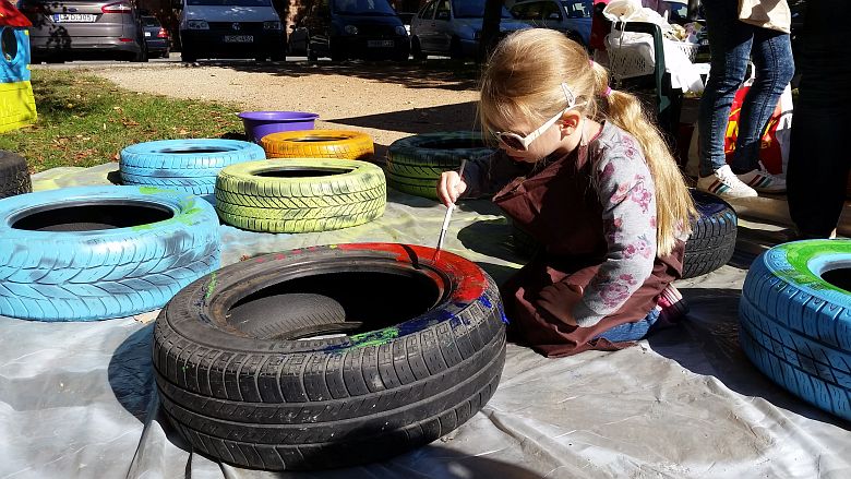 Fehér sátrakkal telt meg vasárnap délelőtt a Jávor Ottó tér. A sörpadokon, asztalokon a gyöngyöktől kezdve a kidobásra ítélt kupakokon keresztül a sokszínű fonalakig rengeteg alapanyaggal ismerkedhettek meg a fehérvári kreatívok. Sok helyen rámutattak arra, hogy egy kis furfanggal a legegyszerűbb alapanyagok is újrahasznosíthatók. Így készült például a petpalackból átlátszó dizájnfotel, a fémkupakokból ékszer és a tojástartóból színes hernyó. A kicsik komplett festőköpenyes szettben elhasznált abroncsokra festettek többek között kék csíkokat és piros pöttyöket.