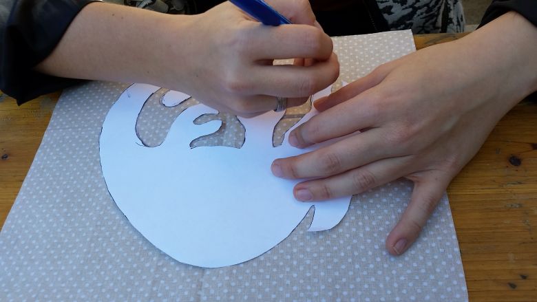 Kikopott nadrág újratöltve: A térdén kikopott nadrágnál először a lyukat kézzel összevarrjuk. Kivágunk egy nem bomlódó például polár anyagból és kartonból egy csillagot. Erre azért van szükség, mert így a textilragasztó nem üt át a nadrág másik oldalán. A lyuk fölé tesszük a csillagokat. Legalulra a papírt, föléje a textilt. A polárcsillag alját alaposan bekenjük textilragasztóval és szépen rárakjuk a másikra. Majd amikor megszáradt, óvatosan alacsony hőfokon rávasaljuk a mintát.