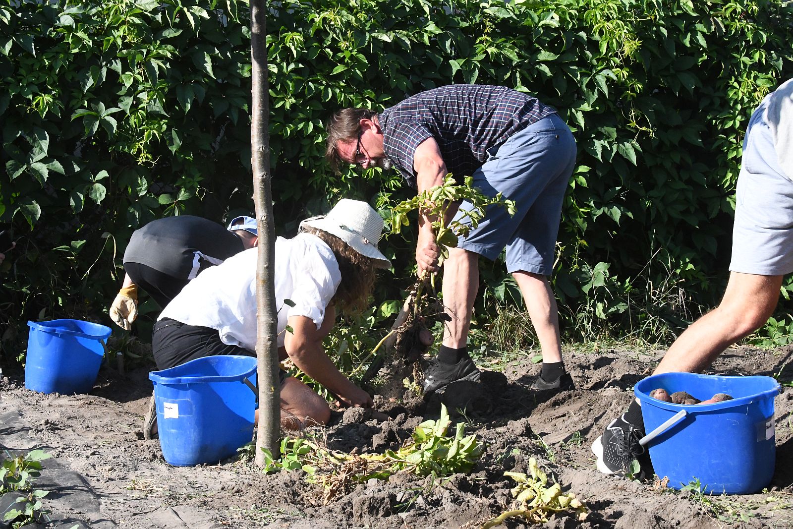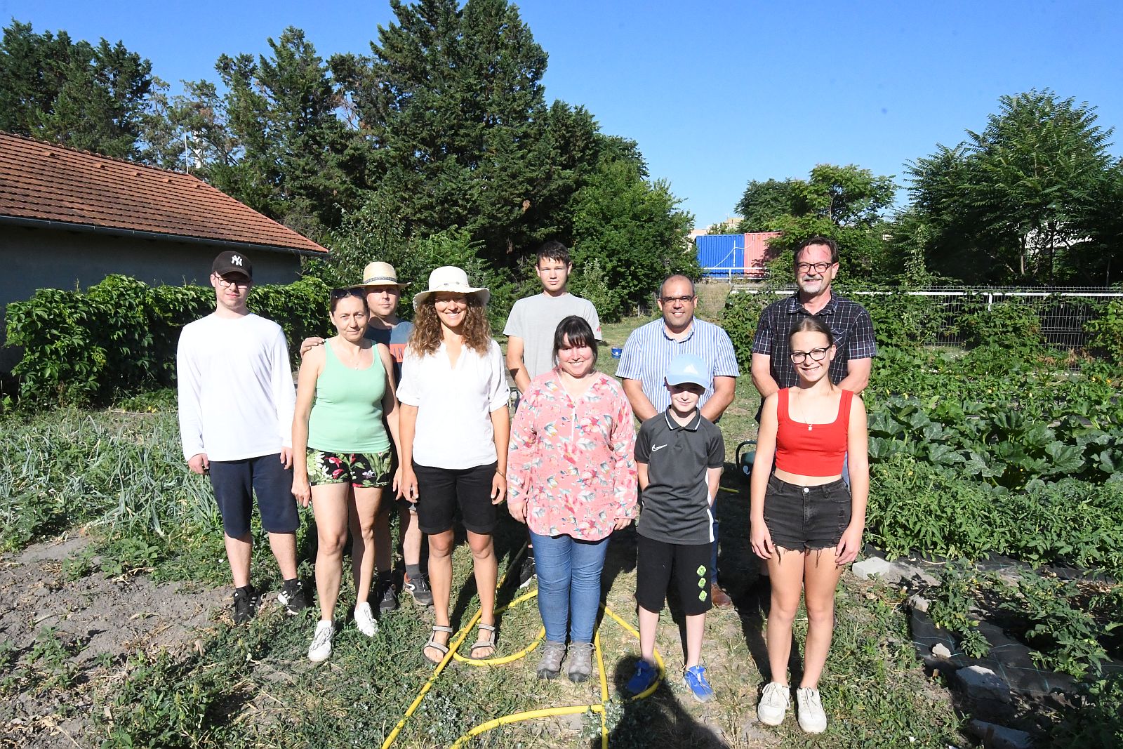 A betakarításon ott volt Bálesné Elekes Rita, a SZÉNA Egyesület elnöke, aki elmondta, két éve dolgoznak ezen a területen. A programjuk különlegessége, hogy a kert gondozását a tanév során a Székesfehérvári Vasvári Pál Általános Iskola 3.a osztálya végezte Fóris Anna okleveles kertészmérnök irányításával. Fontos, hogy a gyerekek kapcsolódjanak a természethez, legyen élő, kézzel fogható tapasztalatuk arról, hogy a zöldségek és gyümölcsök miként kerülnek az asztalukra, és mennyi munka van emögött. A szombati munkában az osztály képviseletében Glück Dominik volt jelen, emellett közreműködtek önkéntesek is, köztük az Egyesület tagjai és iskolai közösségi szolgálatot teljesítő fiatalok.