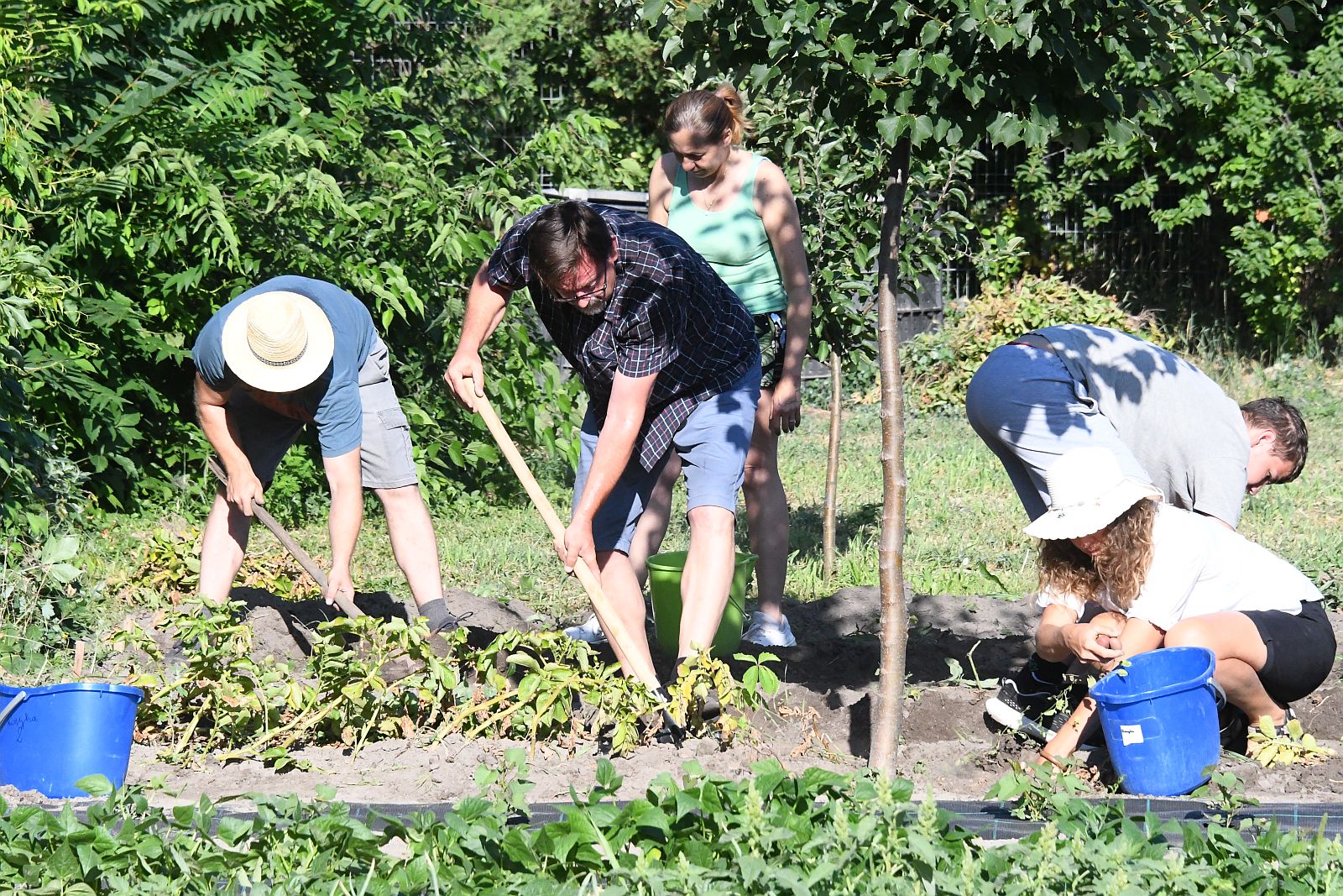 Példásan gondozott és szépen termő, közösségi konyhakert bújik meg Palotavárosban, a SZÉNA Egyesület Csibészke bölcsődéje mögött. Terem itt többféle paradicsom, paprika, vöröshagyma, padlizsán, cukkini, sőt füge és többféle fűszernövény is. Néhány ágyást burgonyával vetettek be, amely nagyon jó termést hozott. Szombaton reggel sajtónyilvános esemény keretében mintegy 100 kilogramm krumplit takarította be, melyet teljes egészében a Smart Grant Alapítványnak ajánlottak fel, így a közösségi kertészkedés valóban közösségi célt is szolgál.