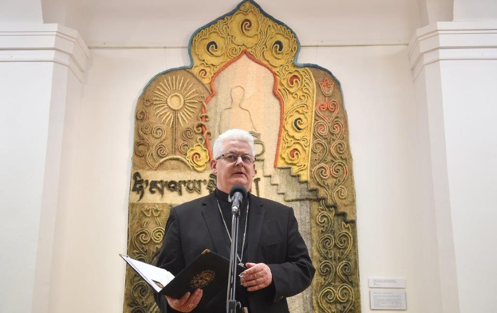 Átlépve a kapun, az irgalmas Isten házába érkezünk, aki szeretet és megbocsátás, aki a bűnbeesett embert nem hagyja magára. Ezen az ajtón minden szükséget szenvedő átléphet, de ezen keresztül lép ki az egyház is, hogy mindenkinek irgalmasságot hirdessen – fogalmazott a főpásztor, majd hozzátette: „Kubinyi Anna lelkében a kapu, mint a befogadás, a bensőséges és mély találkozás szimbóluma élt. A kapu két világot választ el és köt össze, a ’kint és bent’ között áll.” A művésznő kapui mindig nyitva vannak, teret és időt, embereket és kultúrákat kötnek össze. Így a Kőrősi Csoma-emléktextil a békés együttélésnek, a kölcsönös tiszteletnek és megbecsülésnek az erejét hirdeti. De a kapu számunkra egyszerre nemzeti és egyetemes kulturális szimbólum is” – mondta a püspök.