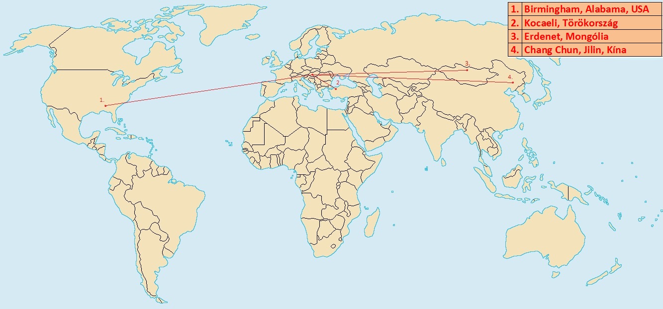 | Kína | Chang Chun (Jilin tartomány) | - | 2010. |