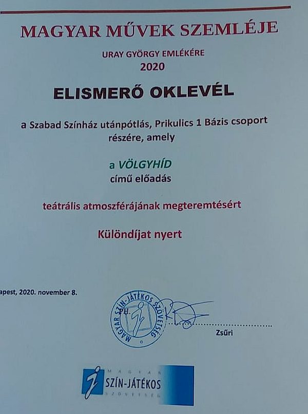 Különdíjat nyert a Szabad Színház utánpótlás csoportja a Magyar Művek Szemléjén