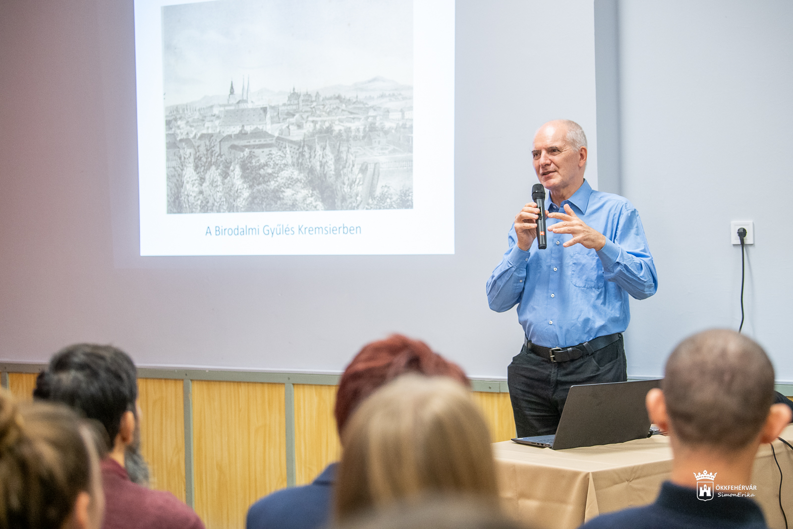 A Székesfehérvári SZC Deák Ferenc Technikum és Szakképző Iskola Innovációs Munkaközösségében merült fel az ötlet egy élményalapú, egyúttal az érettségi vizsgára való felkészülést is segítő előadássorozat életre hívásáról, amelynek során olyan ismert személyeket hívnának meg az iskolába, akik a tanárok, pedagógusok látásmódjától eltérően, új oldaláról tudnának bemutatni egy-egy témát – tudtuk meg Bánfalvi Róberttől. A Deák Technikum igazgatója azt is elárulta, ebből az ötletből született meg az „Érettségi Műhely – Kulcs a továbbtanuláshoz” névre hallgató sorozat, amelynek idei első előadójaként kedden Prof. Dr. Hermann Róbert történész, egyetemi tanár várta a diákokat „A tavaszi hadjárattól a világosi fegyverletételig” címmel, az 1848-49-es forradalom és szabadságharc témájában.