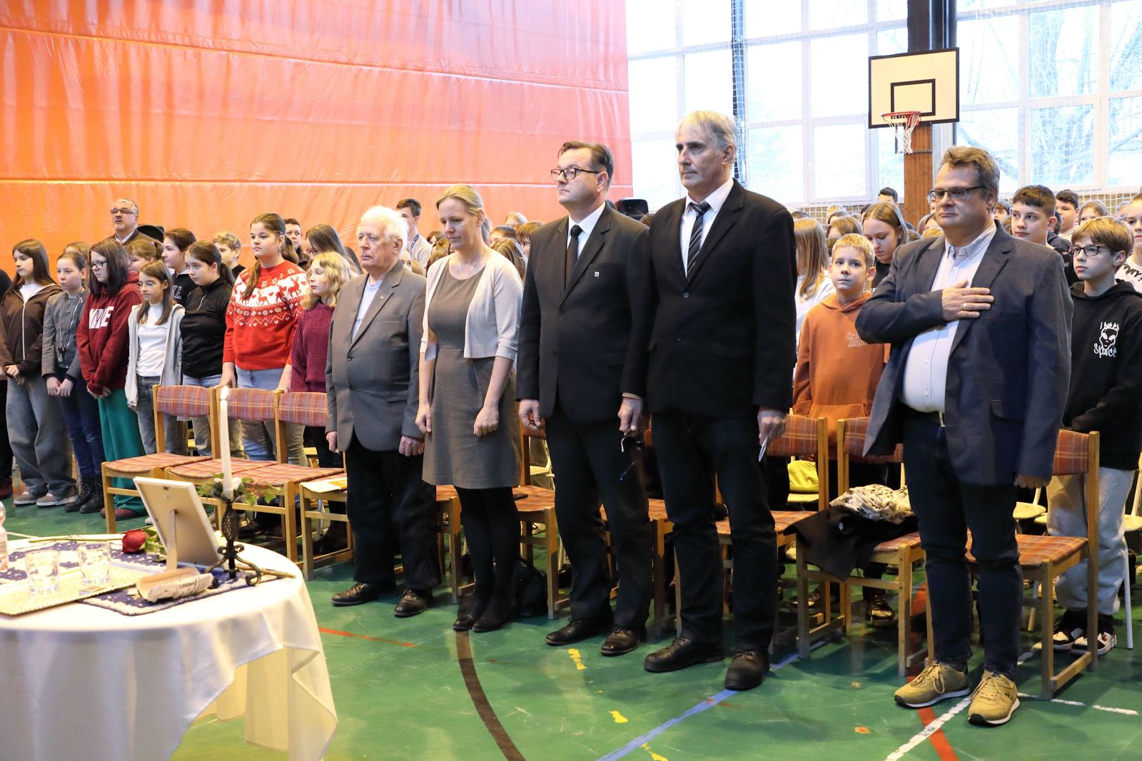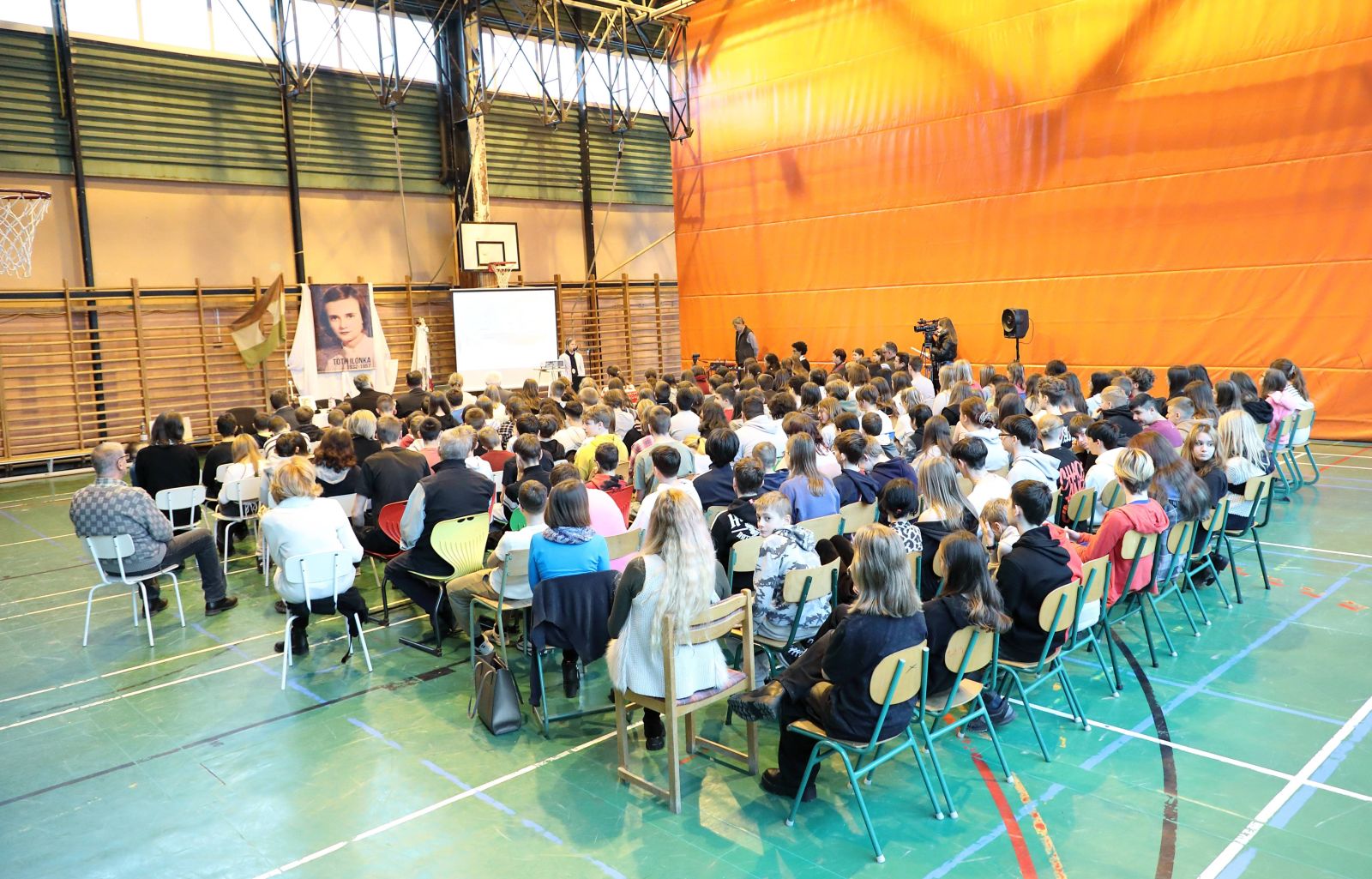 Laczkó Gábor, a Vasvári Pál Általános Iskola igazgatója köszöntötte a megjelent vendégeket, majd arra hívta fel a tornateremben összegyűlt diákok figyelmét, hogy egy valóban különleges történelemóra veszi most kezdetét.
