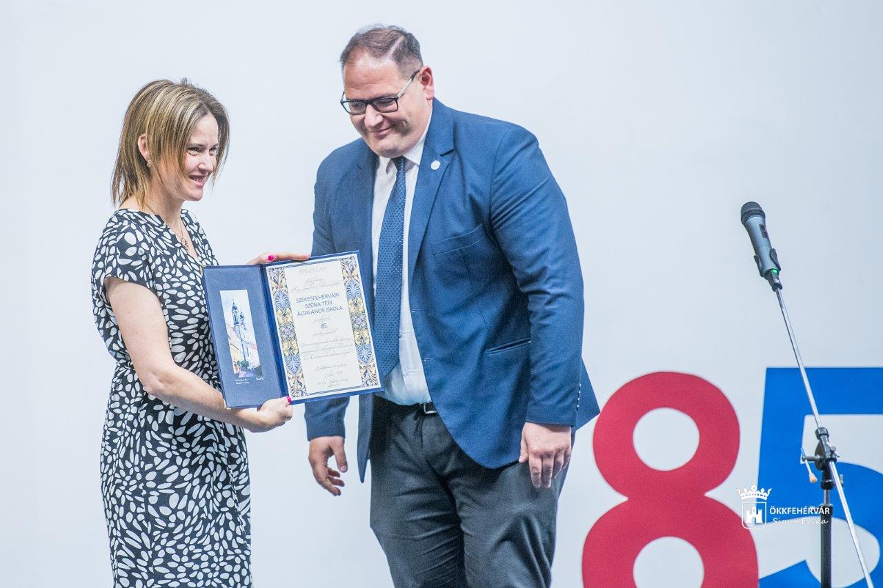Mészáros Attila alpolgármester Dr. Cser-Palkovics András polgármester nevében az intézmény vezetőjének, Dr. Lórodiné Lajkó Ágnesnek átadta azt az elismerő oklevelet is, amellyel a város kifejezi köszönetét az iskolának és annak valamennyi dolgozójának.