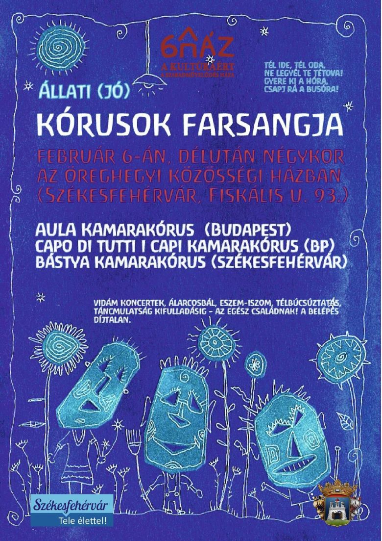 A Kultúrházak éjjel-nappal programhoz az Öreghegyi Közösségi Ház is csatlakozik: február 6-án 16 órától kezdődik a Kórusok farsangja. A zenés esten fellép az Aula Kamarakórus, a Capo di Tutti kamarakórus, valamint a Bástya Kamarakórus. A családokat a vidám koncertek mellett álarcosbál, eszem-iszom és táncmulatság várja.