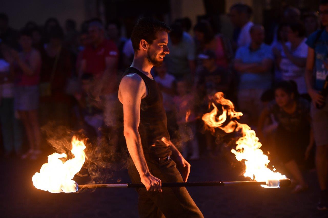 Szombaton nemcsak zenével csábítjuk az érdeklődőket a Belvárosba: ezen az estén ismét a Prometheus Project tűzzsonglőrei kápráztatják el a nagyérdeműt látványos bemutatóikkal. Soraikat fehérvári zsonglőrök mellett veszprémi, budapesti és gyulai művészek is színesítik. Tárházukban olyan eszközök szerepelnek, mint a hosszúbot, a poi, az angyalszárny, a virágpálca, a tüzes legyező, a mazsorettpálca, a tüzes hulahopp és a kéztűz