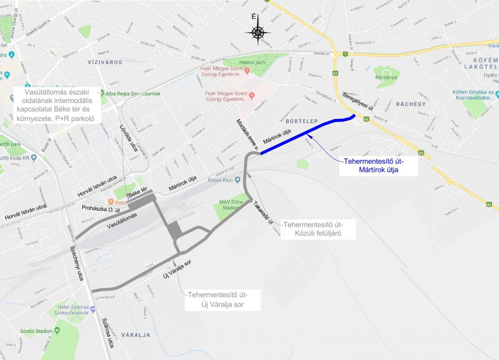 A gyors és pontos autóbuszközlekedéshez a városi úthálózat kapacitásait is növelik, ezért megvalósul az Új Váralja sor fejlesztése és összekötése a Martírok útjával egy vasút feletti híddal. A vasút déli oldalán ez az úthálózat-fejlesztés biztosítja a gyalogos felüljáró és annak déli oldalán egy 130 férőhelyes P+R parkoló kiszolgálását. Ez a P+R parkoló már úgy lesz kialakítva, hogy helyi autóbusz-járatokat is tud fogadni, így a déli városrészeknek gyorsabb elérést tudnak adni a vasúthoz.