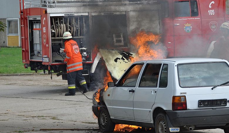 A Fehérvári Tűzoltó Egyesület lelkes csapata látványos tűzoltási és műszaki mentési bemutatót tartott Székesfehérváron, az Ikarus gyártelepen hétfőn délelőtt.