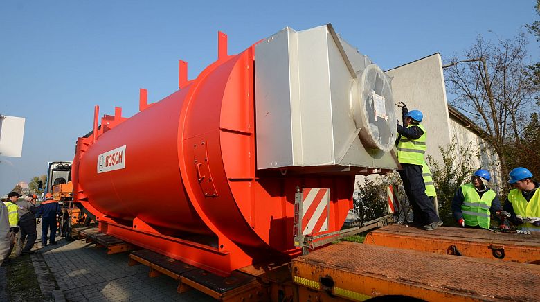 Egy közel húsz Megawattos meleg vizes kazánt épít be a Széphő Zrt. a Bakony utcai fűtőerőműbe, melynek nagyobb elemeit csütörtökön, egy 250 tonnás daruval emelték be a helyére. A kazán beemelése előtt a kéményt építették össze a szakemberek, amit túlméretes szállítmányként két darabban lehetett szállítani. A látványos daruzás egész nap tartott.