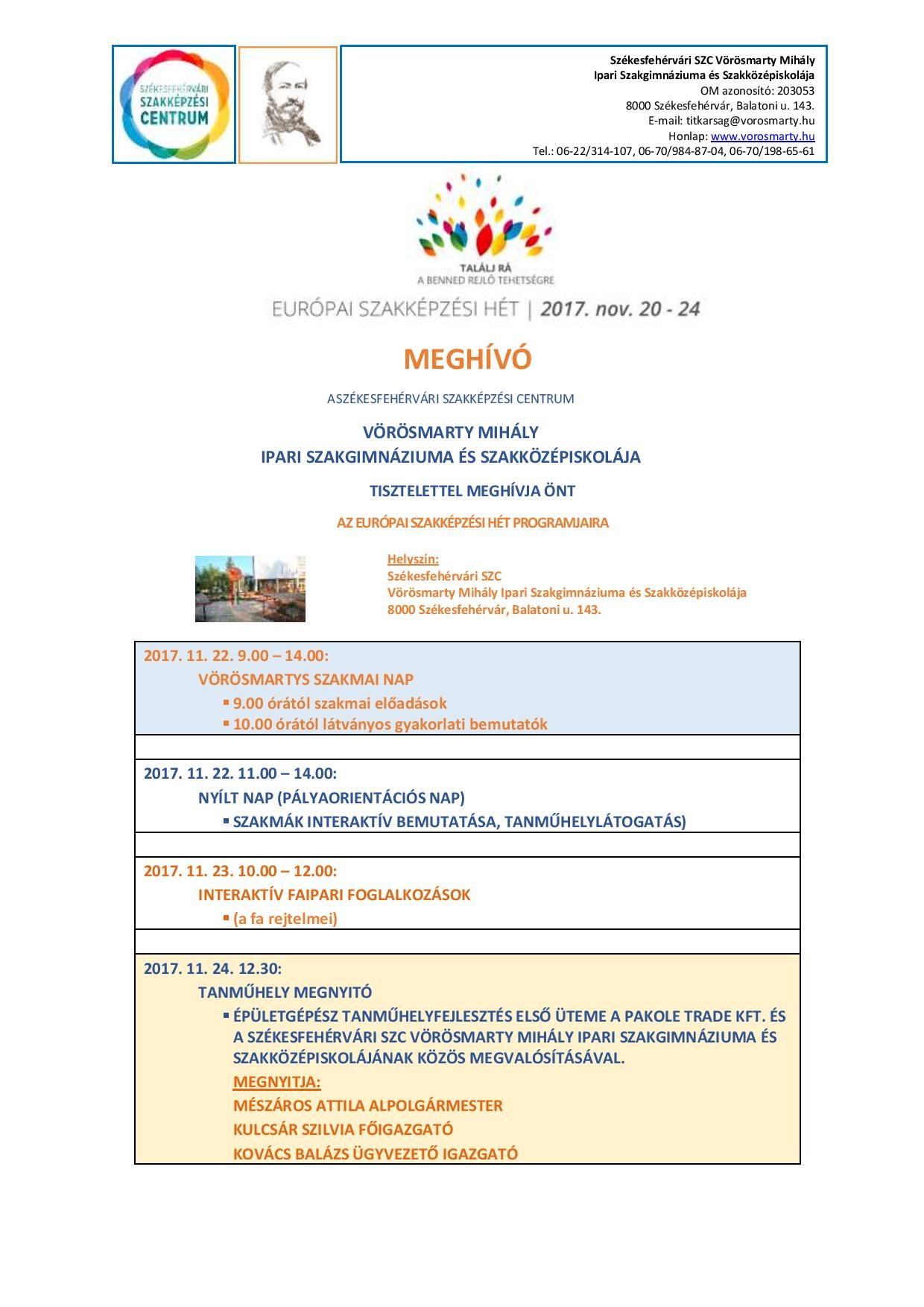 Interaktív faipari foglalkozással, pályaorientációs nappal és látványos szakmai bemutatókkal, előadásokkal színesített szakmai nappal várja az érdeklődőket a Székesfehérvári Szakképzési Centrum Vörösmarty Mihály Ipari Szakgimnáziuma és Szakközépiskolája.