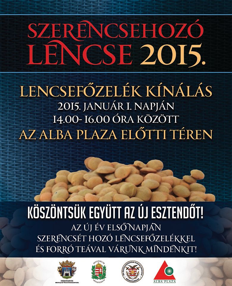 Január 1-jén, csütörtökön délután kettő órakor kezdődik a "Szerencsehozó Lencséből" készült főzelék kínálása, ahol a Magyar Honvédség gulyáságyúiban fő a szerencsehozó étel az Alba Plaza előtt. A legtöbb kultúrában a lencse a termékenység vagy pénz jelképe. A babonások újév első napján lencsét fogyasztanak, amely egész évre pénzt vagy legalábbis jólétet biztosít.