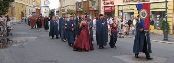 A kétnapos esemény hagyományosan a mintegy 15 borlovagrend Fő utcai felvonulásával kezdődött az Alte Kameraden Fúvószenekar kíséretében. Tihany, Esztergom, Kecskemét, Badacsony mellett érkeztek Szlovákiából is borlovagrendek.