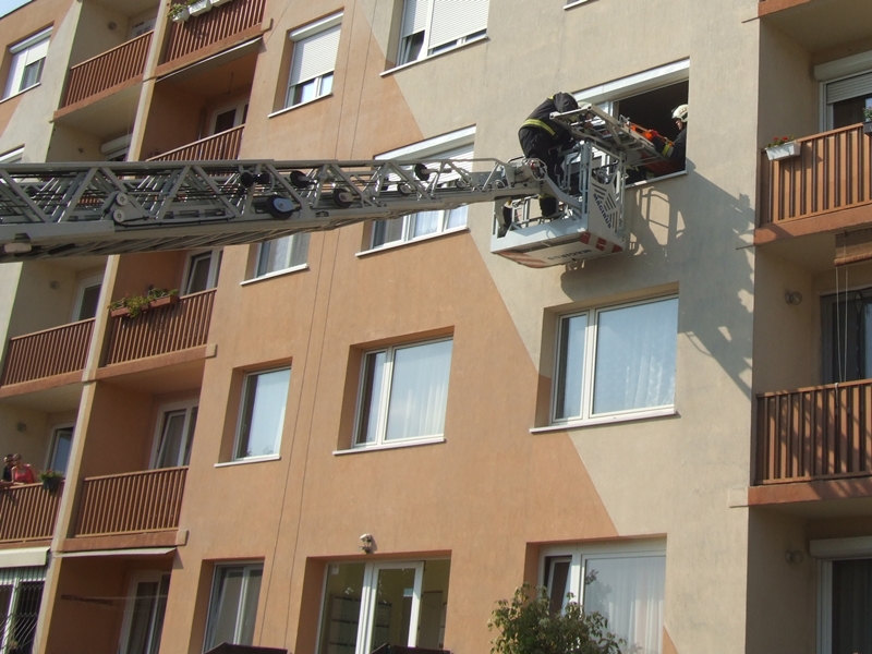 A létraszer kosarára illesztett mentőágyon hoztak le egy beteget a hivatásos tűzoltók egy társasház második emeletéről Székesfehérváron. A Seregélyesi úton a mentők kérték a katasztrófavédelem segítségét, mert a beteget az állapota miatt a lépcsőházon keresztül nem lehetett levinni a menőautóhoz.