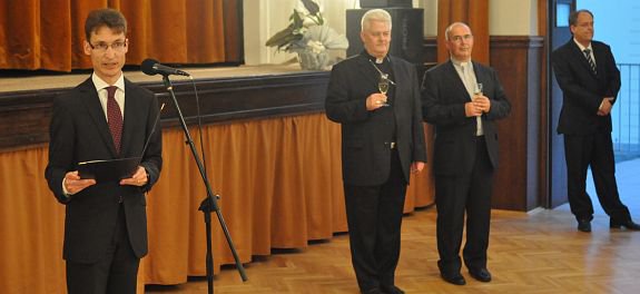 A fogadáson elsőként dr. Cser-Palkovics András polgármester olvasta fel Orbán Viktor miniszterelnök levelét, majd Vargha Tamás köszöntötte a kitüntetetteket.