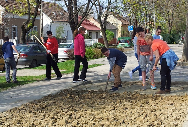 A zárprogramon részt vett Deák Lajosné önkormányzati képviselő, aki mindig nagyon szívesen támogat olyan programokat, amik a fiatalok környezettudatosságának fejlesztését szolgálja. Reggeltől kezdve szülők, diákok, tanárok, a képviselő asszony és a Gaja Környezetvédő Egyesület közös erővel dolgozott az iskola udvarán. Füvet nyírtak, kapáltak, ástak, gereblyéztek, minden olyan kerti munkát elvégeztek, amit tavasszal el kell végezni a kertekben.
