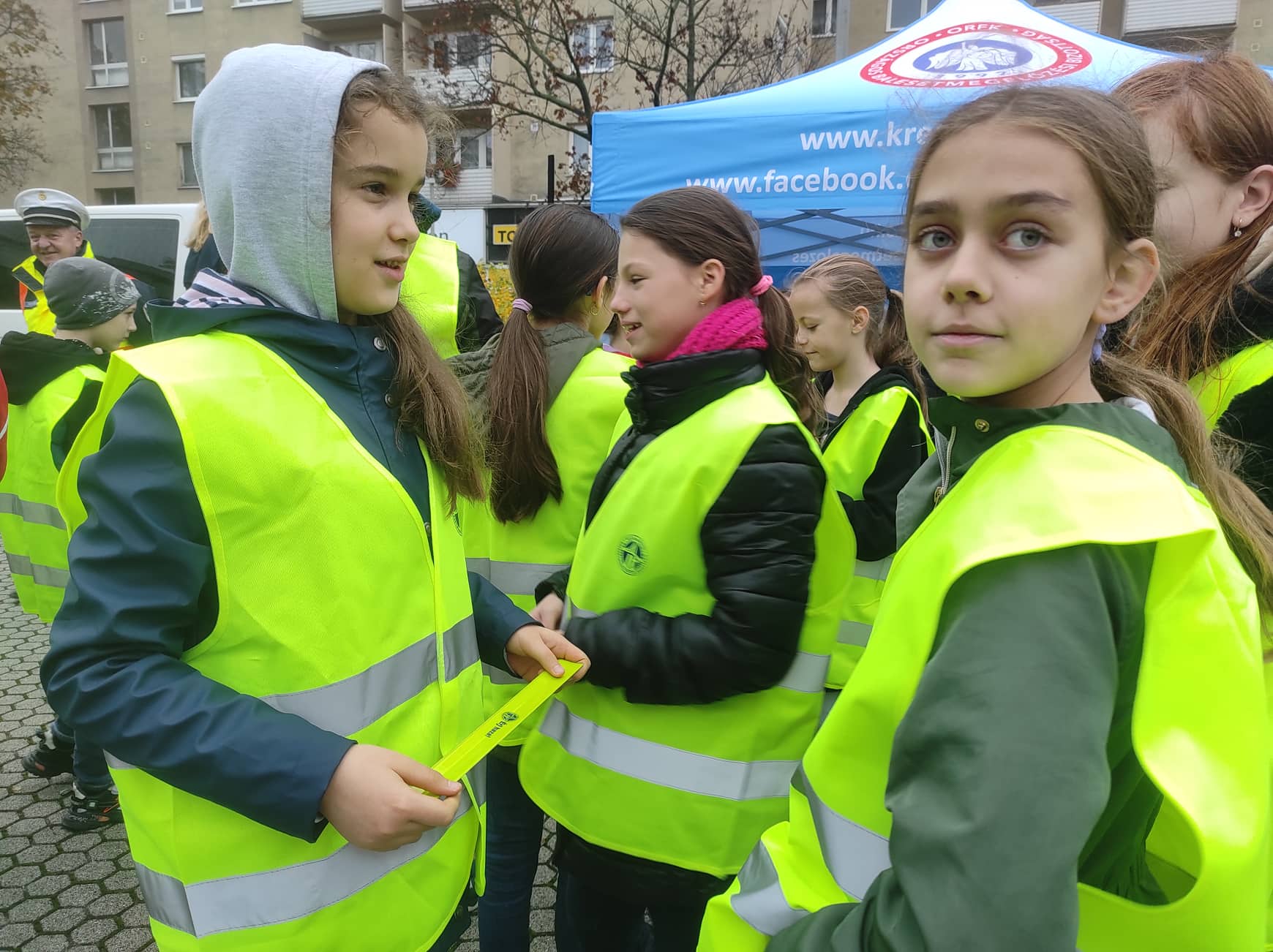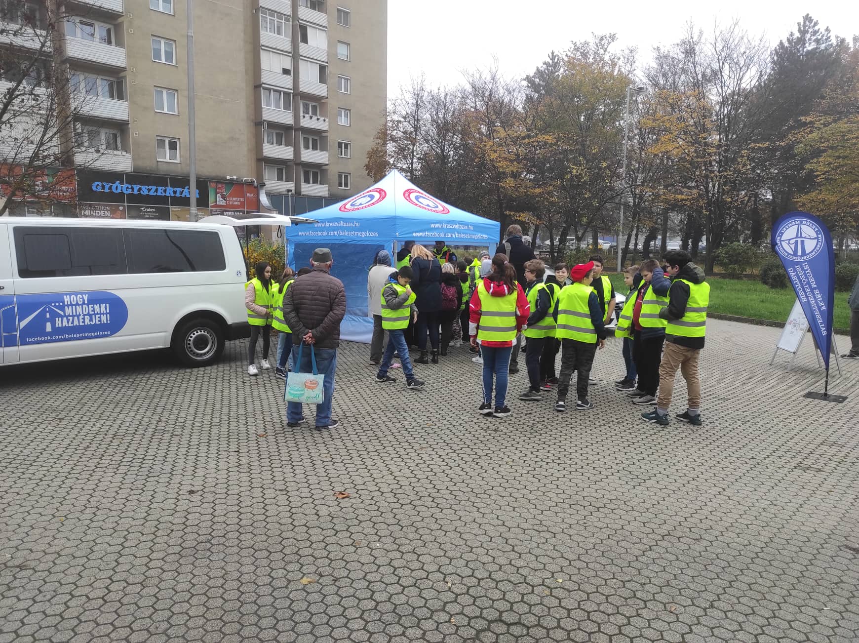 A Civil Központ előtti téren felállított standnál péntek délelőtt mindenki kaphatott láthatósági mellényt, kerékpárprizmát és lámpát, valamint fényvisszaverő karperecet is.
