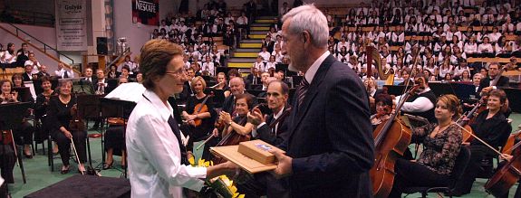 Somorjai Ferenc, Horányi Ottília, Mihályi Gyuláné, Tatár Dezsőné és Márkus József után Lovrekné Auth Ágnes kapta az ARÉV Sportcsarnokban, a Zene Világnapja alkalmából megrendezett ünnepségen, a nagy jelentőséggel bíró Fricsay-díjat. Lovrekné Auth Ágnes a Teleki Blanka Gimnázium Leány- és Vegyeskarát vezeti. A díjat a város polgármestere Warvasovszky Tihamér adta át.