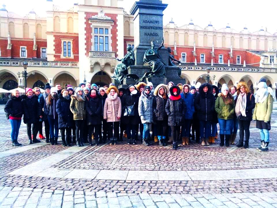 Hétfőn reggel elbúcsúztunk vendéglátóinktól, és elindultunk utunk utolsó állomására, Krakkóba. Bár csak egy rövid városnézés erejéig tudtunk ismerkedni Krakkó látnivalóival, így is emlékezetes órákat töltöttünk a városban. Városnéző sétánkat a Wawel székesegyházzal kezdtük, ahol felkerestük a jeles, magyar vonatkozású emlékeket. Tiszteletünket tettük Szent Hedvig, Nagy Kázmér és a Jagelló királyok síremlékeinél. Átsétáltunk a székesegyház szomszédjában álló királyi várpalota reneszánsz udvarába is. A Wawel megtekintését Krakkó főterének meglátogatása követte. Sétánk állomásai a Posztócsarnok, a Városháza tornya, a Szent Adalbert-templom voltak, hogy csak a legfontosabbakat említsük. Városnézésünk végén még a Mária-templom tornyában megszólaló Hejnalt is volt szerencsénk meghallgatni. A város heves hóviharral búcsúztatott minket. A sűrű hóesés végigkísérte utunkat Szlovákiában is, komoly nehézséget okozva buszvezetőinknek.