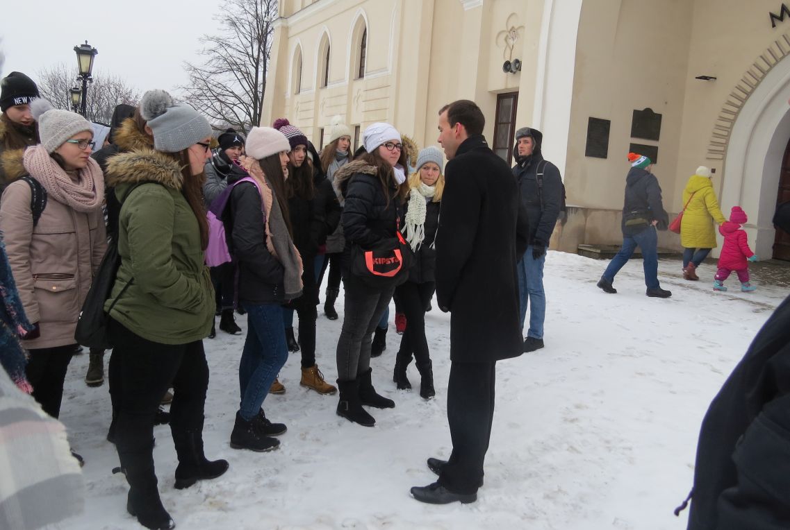 A vasárnap délelőtti városnézésünk alkalmával kellemes meglepetésben volt részünk, mert lengyel vendéglátóink idegenvezetőnknek Honti Attilát, egy magyar-lengyel származású atyát kértek fel. Neki köszönhetően anyanyelvünkön hallhattuk a város történelmi épületeinek a bemutatását. Lublinban volt alkalmunk megnézni az európai hírű középkori várkápolnát, ahol a nyugati gótikus építőművészet és az 1418-ban készített bizánci freskók alkotnak csodálatos és egyedülálló egységet. A belvárosban felkerestük a Királyi Bíróság épületét, megcsodáltuk a Trinitárius Tornyot és a mögötte álló katedrálist, valamint sétánk során útba ejtettük a Domonkos templomot és kolostort, valamint a város jelképének számító, Nagy Kázmér által a 14. században épített Krakkói Kaput.
