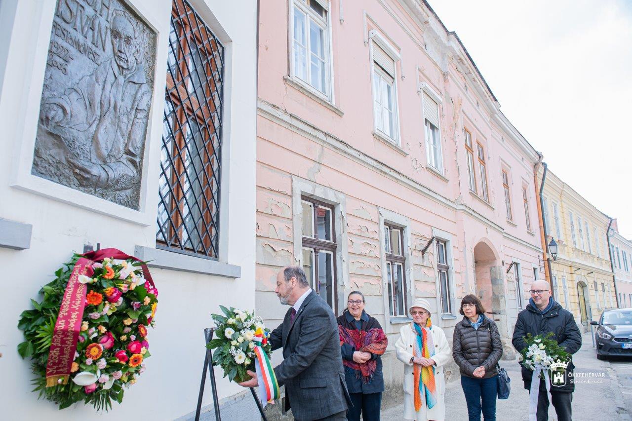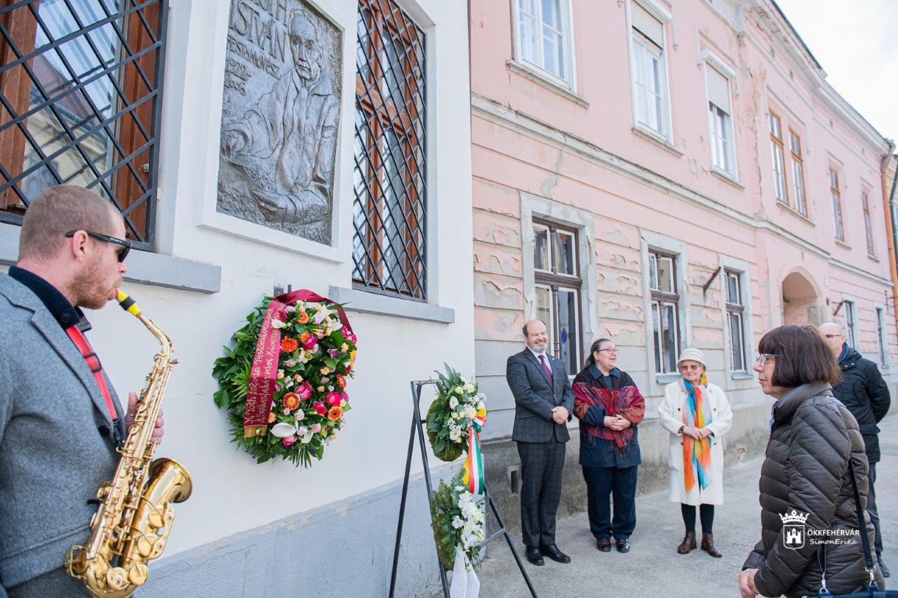 Székesfehérvár Önkormányzata nevében Lehrner Zsolt alpolgármester helyezett el koszorút, majd Tunyogi Gábor a Gárdonyi Géza Művelődési Ház munkatársa és Végvári Beatrix a Székesfehérvári Művészek Társaságának elnöke emlékezett a művész 2007-ben felavatott emléktáblájánál. A kedd délutáni koszorúzáson Mits Márton szaxofon muzsikája varázsolta el az emlékezőket.