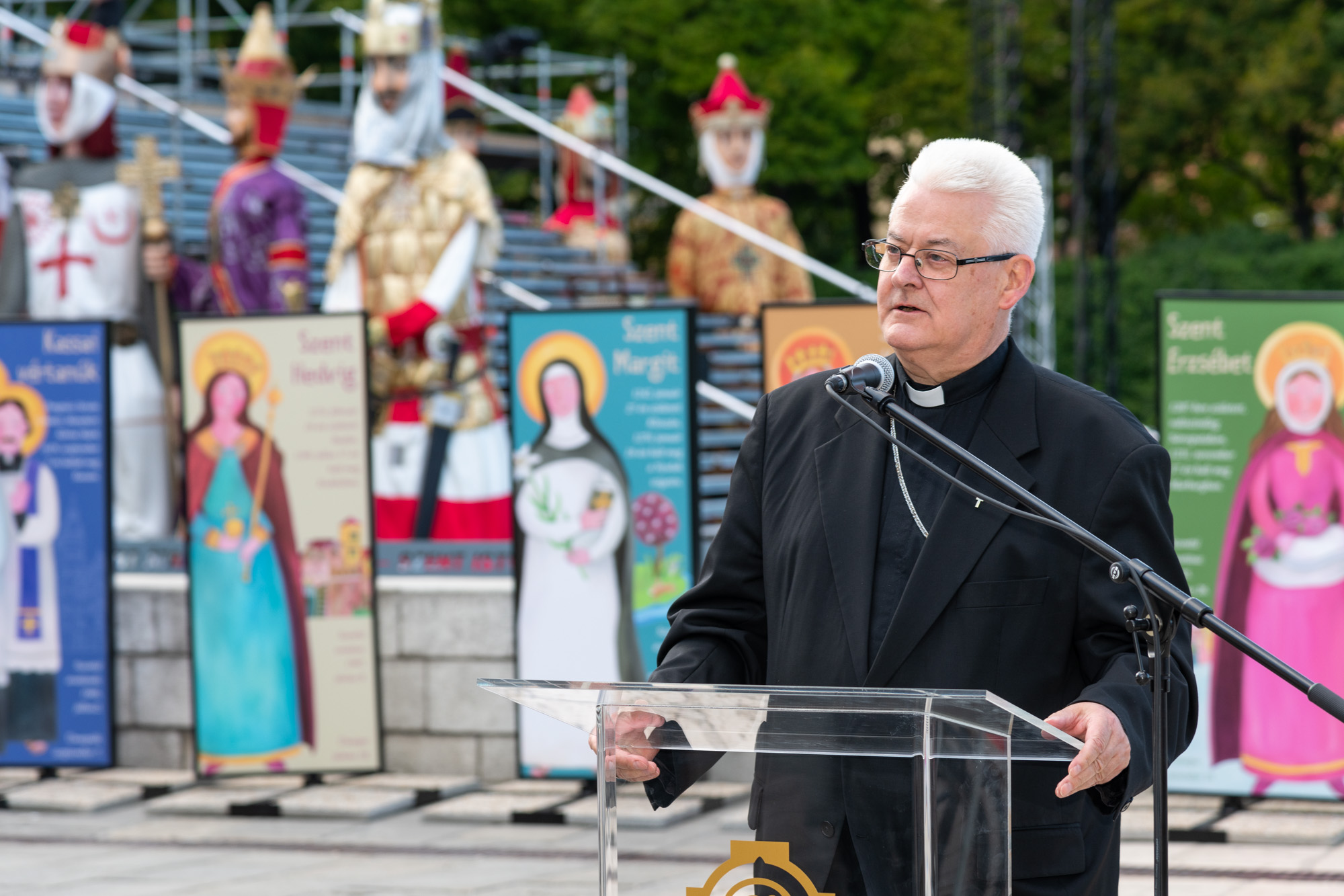 Az Örvendj, magyar hon, jó anya című énekkel köszöntötte a megnyitó résztvevőit a Zsikó Zsuzsanna, Cserta Balázs és Varró János alkotta zenekar, majd Spányi Antal püspök arról beszélt, hogy az ember sorsa, amit Isten kijelölt számára az, hogy kiteljesítse önmagát és sorsát. „A kiteljesedett ember szent ember, aki megvalósítja Isten róla alkotott tervét. A Szent Istváni templom fölött a kiállításon bemutatott szentek alakja átöleli az egész történelmünket. A sor Szent Istvánnal kezdődik és Kaszap Istvánnal fejeződik be. Mindketten Székesfehérvárhoz kötődnek, de mindegyik szentünkről biztosan tudhatjuk, hogy eljöttek Szent Istvánhoz, itt jártak Székesfehérváron és megfordultak a szent király városában. Nagy öröm és megtiszteltetés, hogy a kiállítás eljutott Fehérvárra azokban a napokban, amikor a megújult székesegyház kapuinak megnyitását ünnepeljük, amikor emlékezünk Szent István király felajánlására. Teljesítse be küldetését a kiállítás, mely mellett oly sokan el fognak haladni és érintse meg az emberek szívét és lelkét.” - mondta Spányi Antal megyéspüspök.