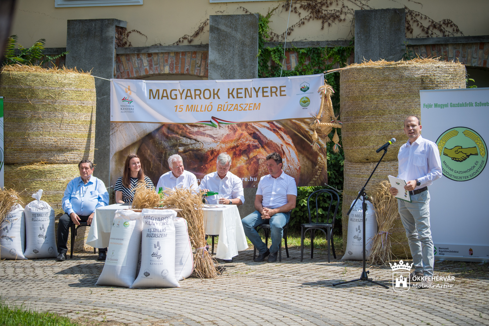 Varga Imre István, a Nemzeti Agrárgazdasági Kamara megyei elnöke elmondta, az évről évre egyre nagyobb támogatottságnak örvendő nemes összefogás keretében eddig 248 adományozó 24800 kg búzát ajánlott fel. A Fejér megyei gazdák minden évben kiveszik a részüket az adakozásból. Ezzel nemcsak a rászoruló családokat segítik, hanem erősítik az ország egységét, hangsúlyozta Törő Gábor országgyűlési képviselő. Kauserné dr. Szabó Virág, az Ifjú Gazdák Fejér Megyei Gazdaköre elnöke köszöntőjében szólt arról a fáradságos munkáról, amelynek során a magból kalász lesz, majd újabb mag. Reményét fejezte ki, hogy a fiatal generáció is képes lesz továbbvinni azt az értékrendet, amelyet elődeiktől tanultak: a gazdálkodáshoz való hozzáállás mellett a közösségről való helyes gondolkodást.
